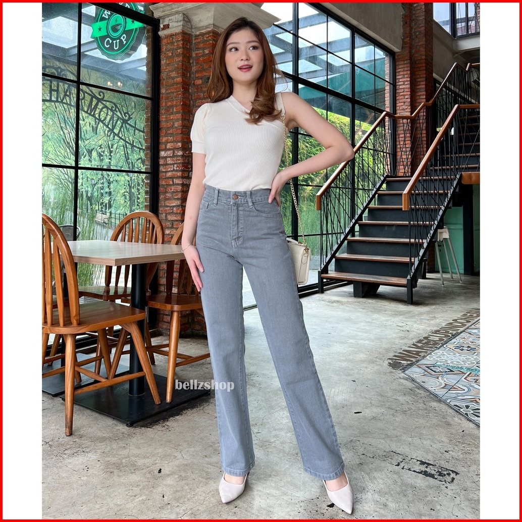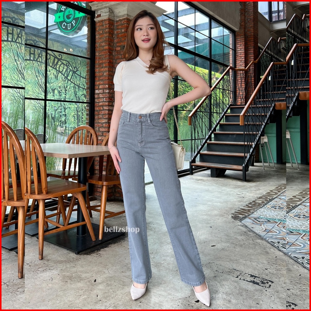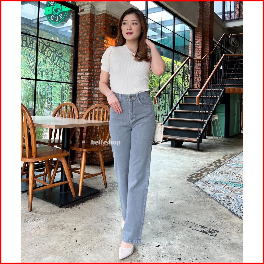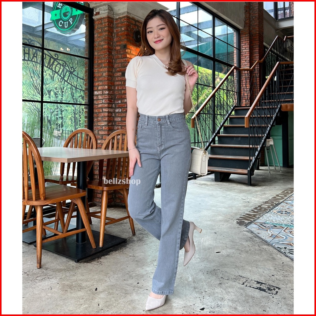 Avril Celana Highwaist Kulot Jeans Wanita Loose Grey Jumbo Premium Bellzshop Size 27 Sd 34