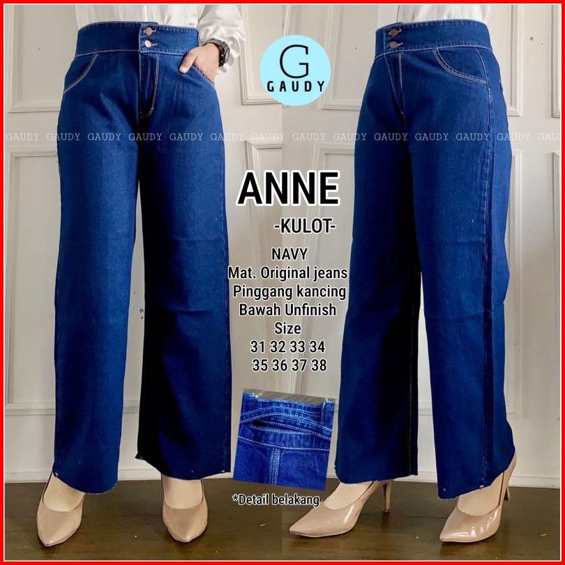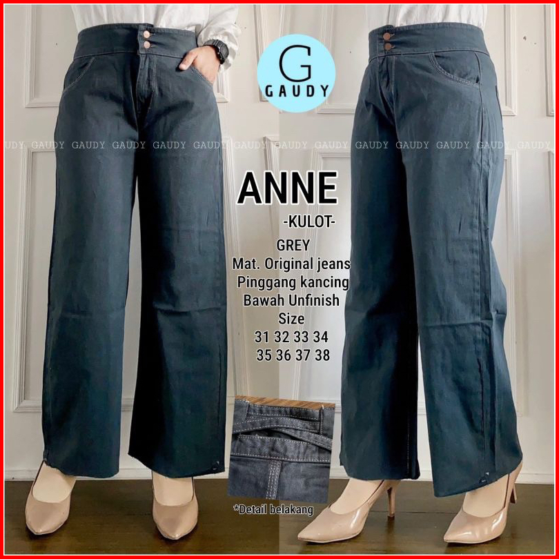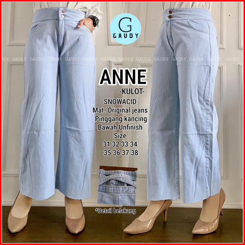 Anne Jeans Kulot Tali Silang Pinggang Kancing Bawah Unfinish