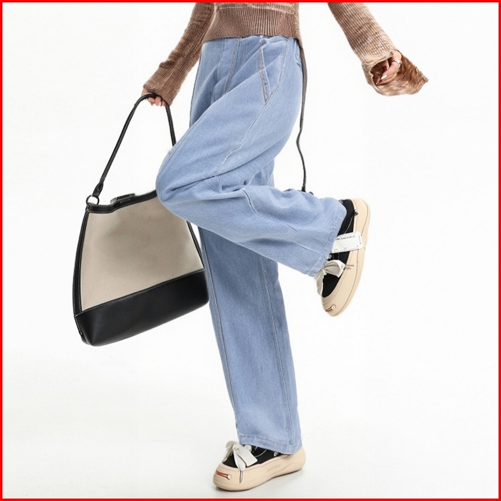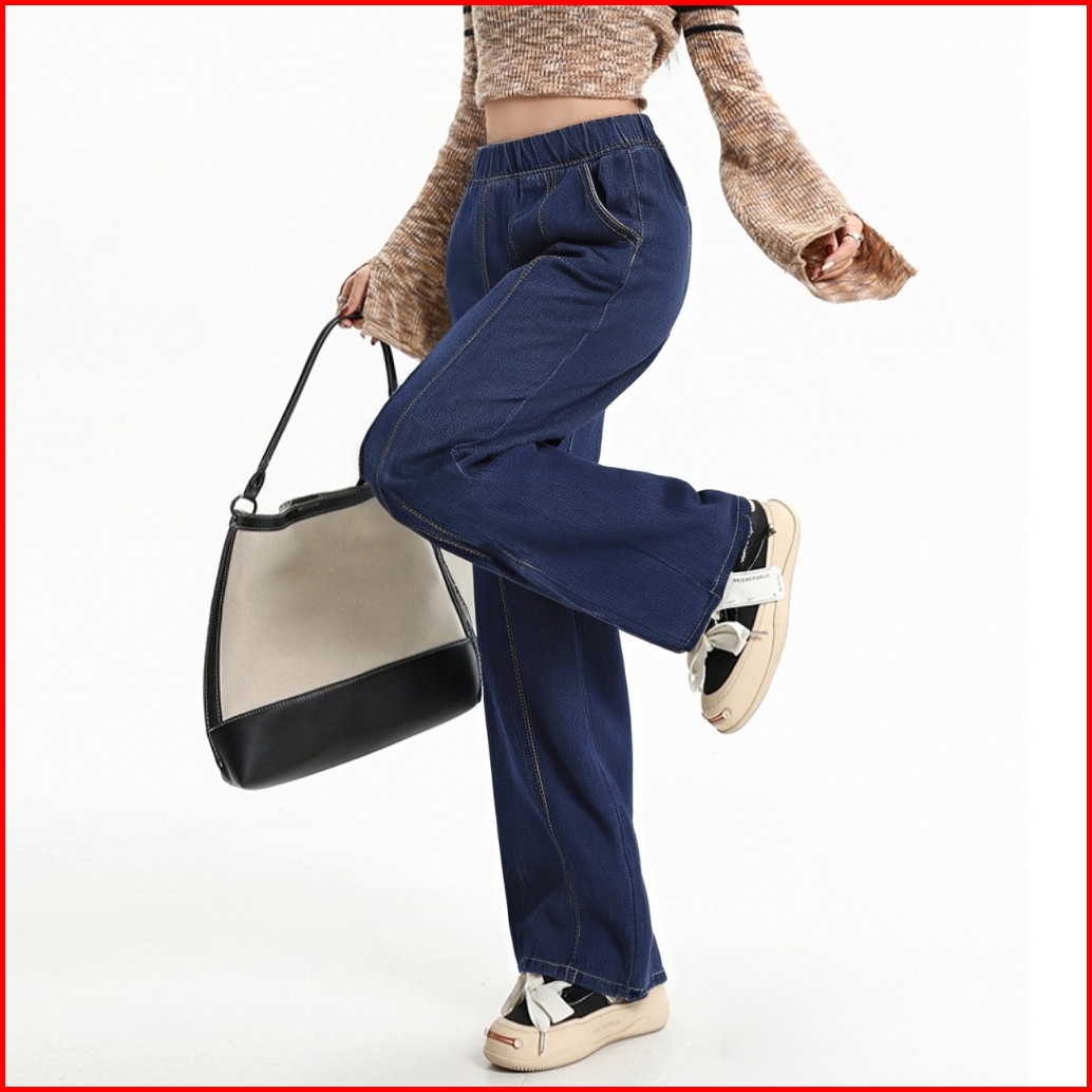 Baggy Jeans Vogue Pants Elastic Waist Korean Style High Waist Straight Cut Jeans