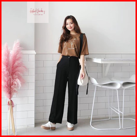 Tukuklambiy Petite Size - Loose Pants Celana Kulot Polyester - Trousers Kantor Formal Casual