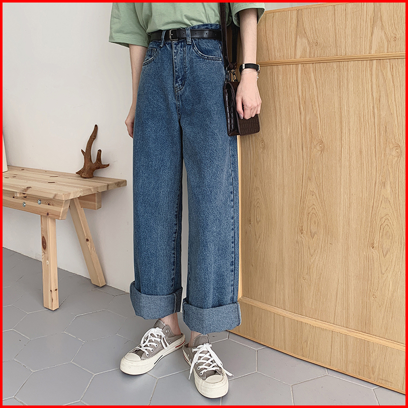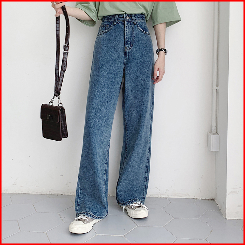 The Monseur Gallery Celana Jeans Wanita Loose Biru High Waist