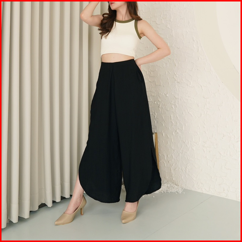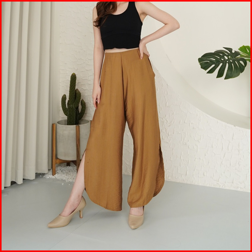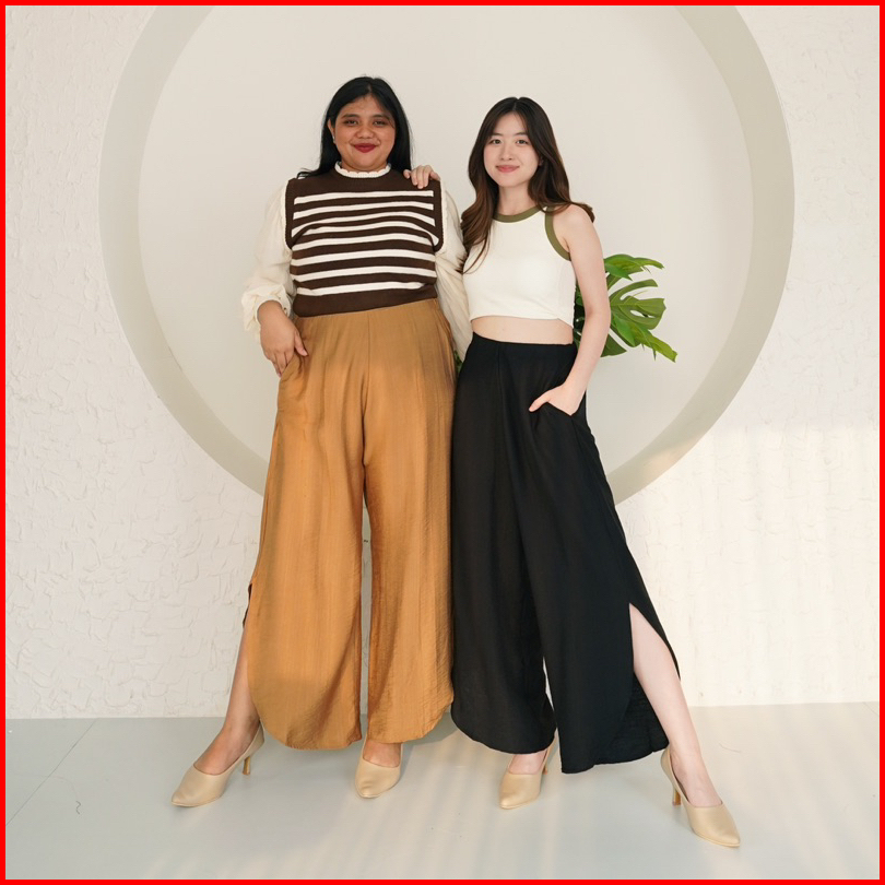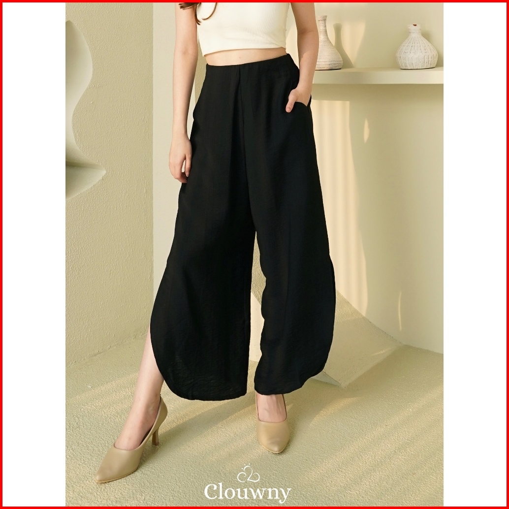 Clouwny Joy Slit Cullotes Pants Premium Celana Kulot Wanita Slit