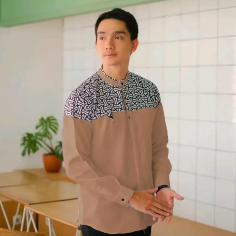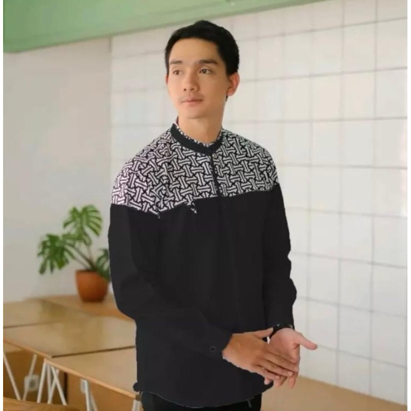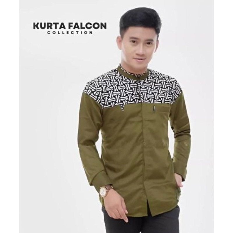(Grtais Ongkir) Baju Koko Pria Dewasa Lengan Panjang Kombinasi Batik falkon terbaru 2024