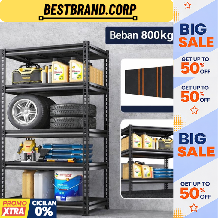 [Mall] Rak Besi Susun Serbaguna Berkualitas Rak Besi Siku Lubang 5 Susun 4 Tingkat Tanpa Baut Rak Gudang Dapur Bengkel