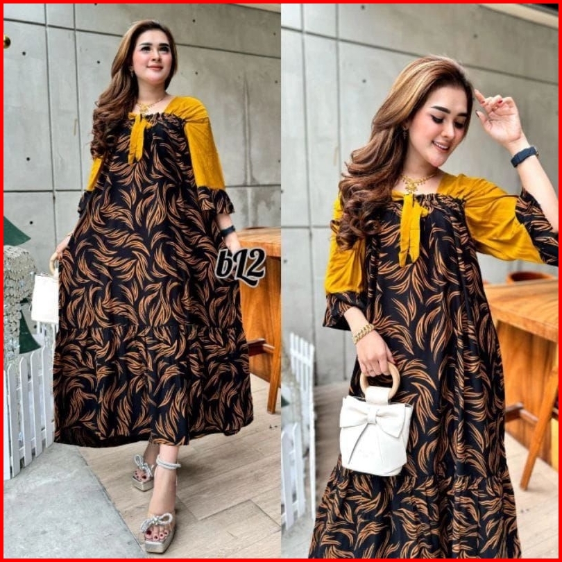 Daster Fuji Rayoon Kerut Dada Dres Lily Pom Pom Rempel Daster Pom Pom Motif Terbaru Dres Fuji Viral Rempel Bawah Dres Fu