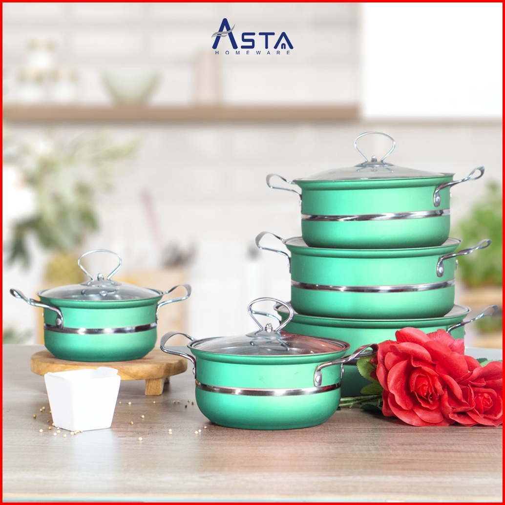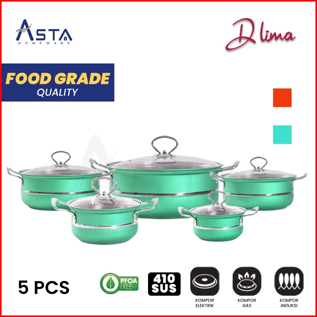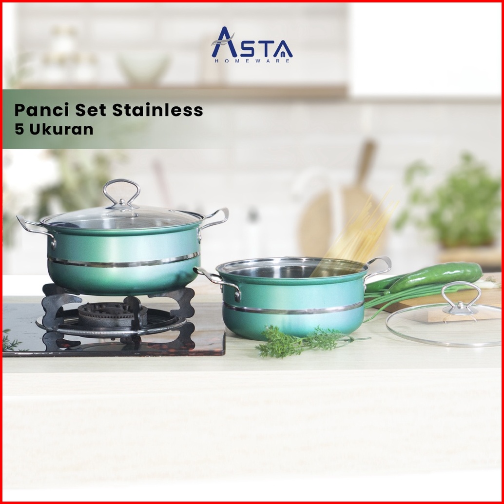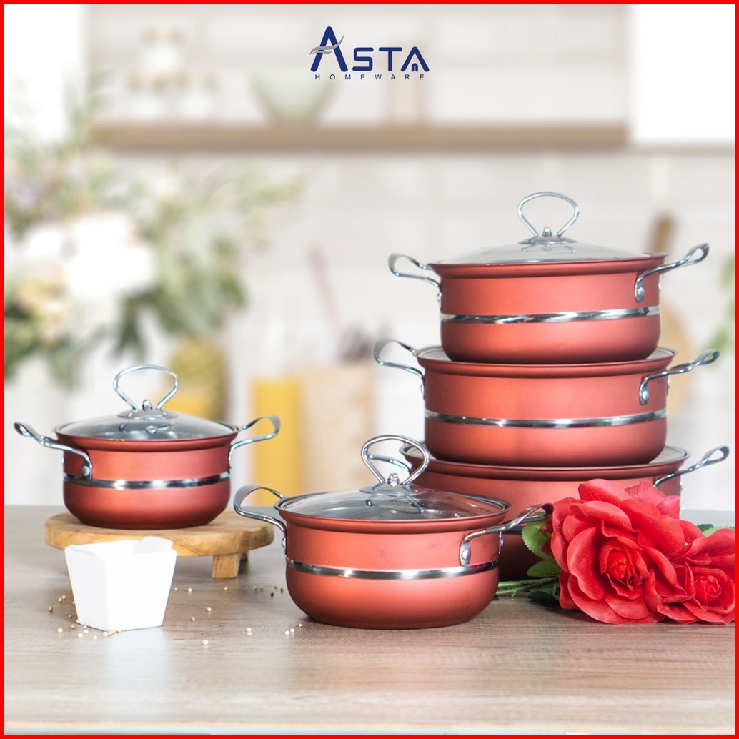 Asta Panci Set Stainless Tutup Kaca Lengkap Susun 5 D Lima 10 Pcs