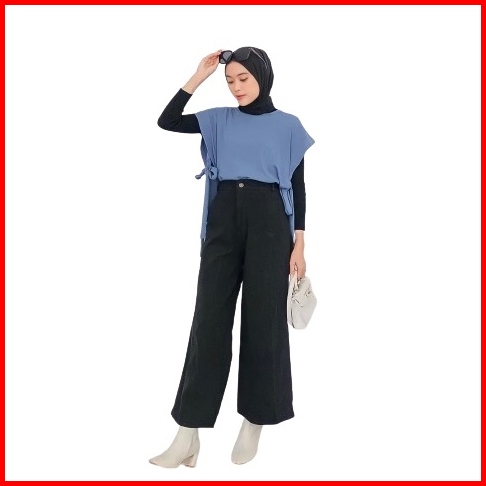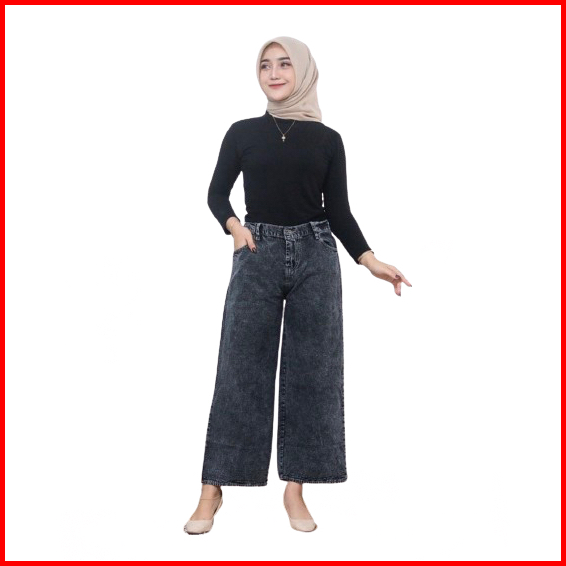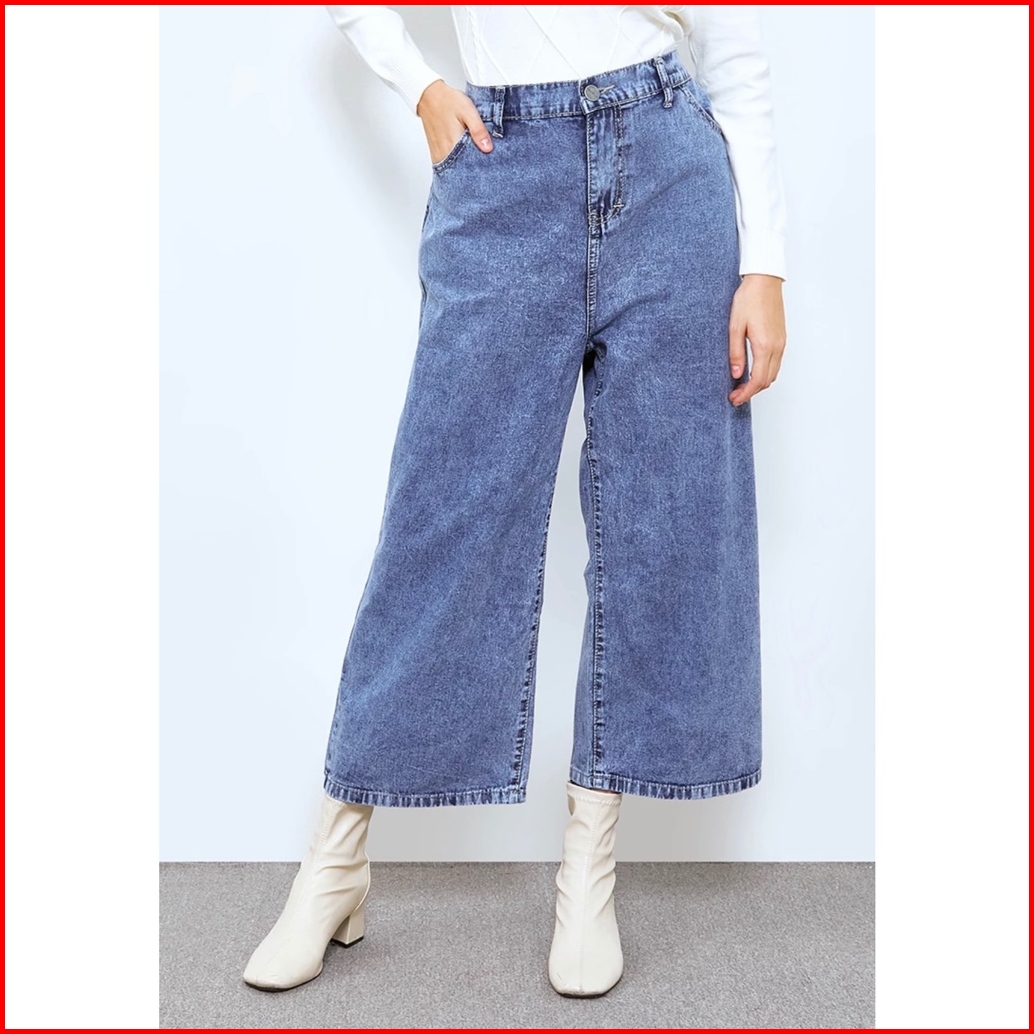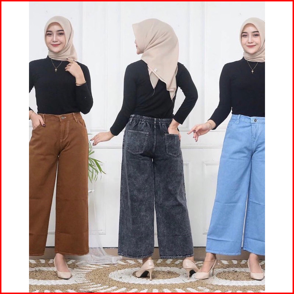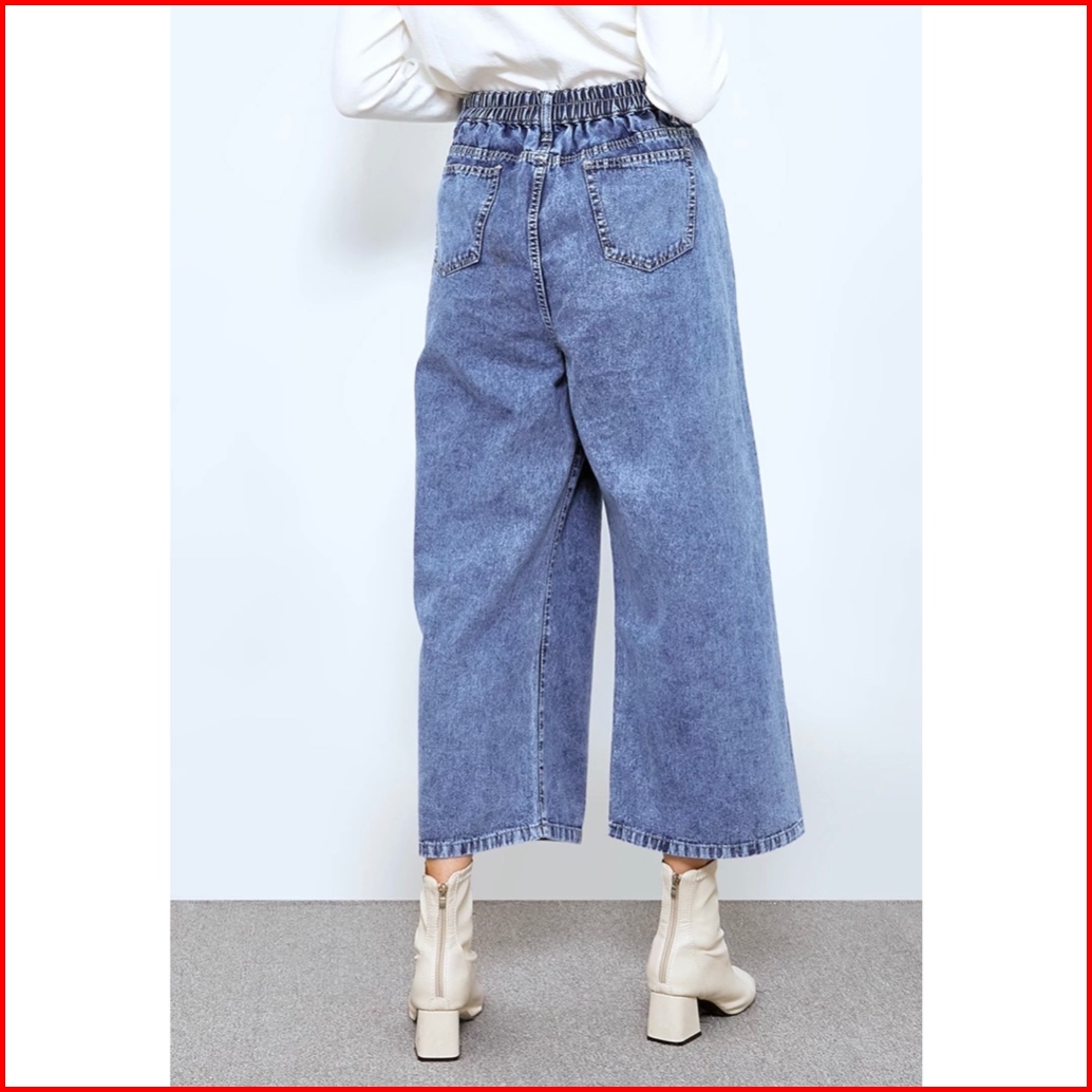 Floresh.id - Celana Kulot Jeans Wanita Bf Kulot Mozza Jeans Pingang Belakang Karet