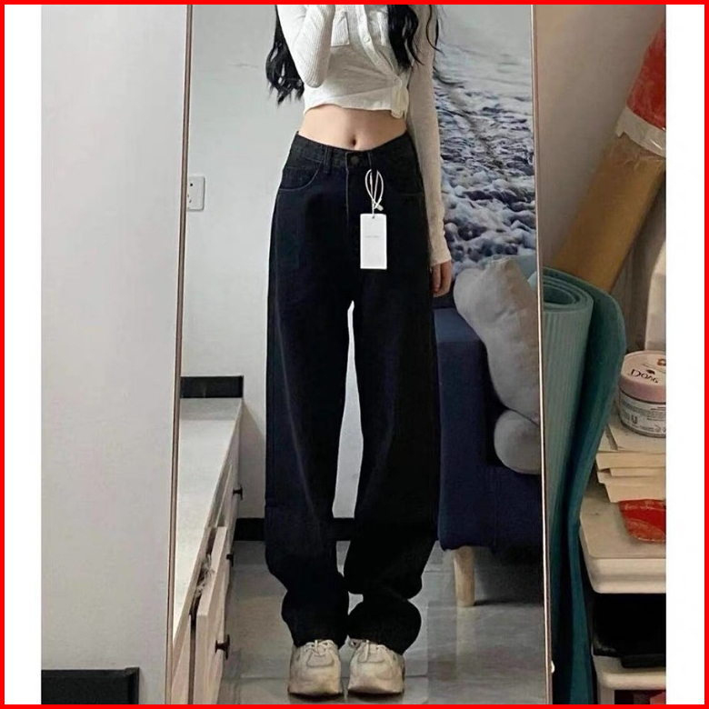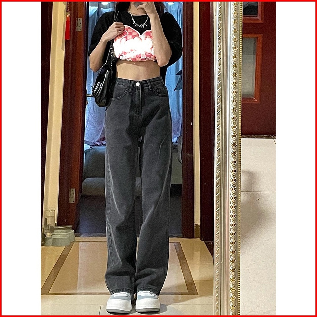 Abu Abu Kulot Highwaist Jeans Wanita Korean Style Jeans Lurus Longgar Celana Panjang Wanita