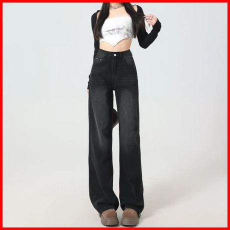 Rominsy - Highwaist Oversize Baggy Loose Jeans Wanita Celana Jeans Wanita Kulot Panjang Highwaist