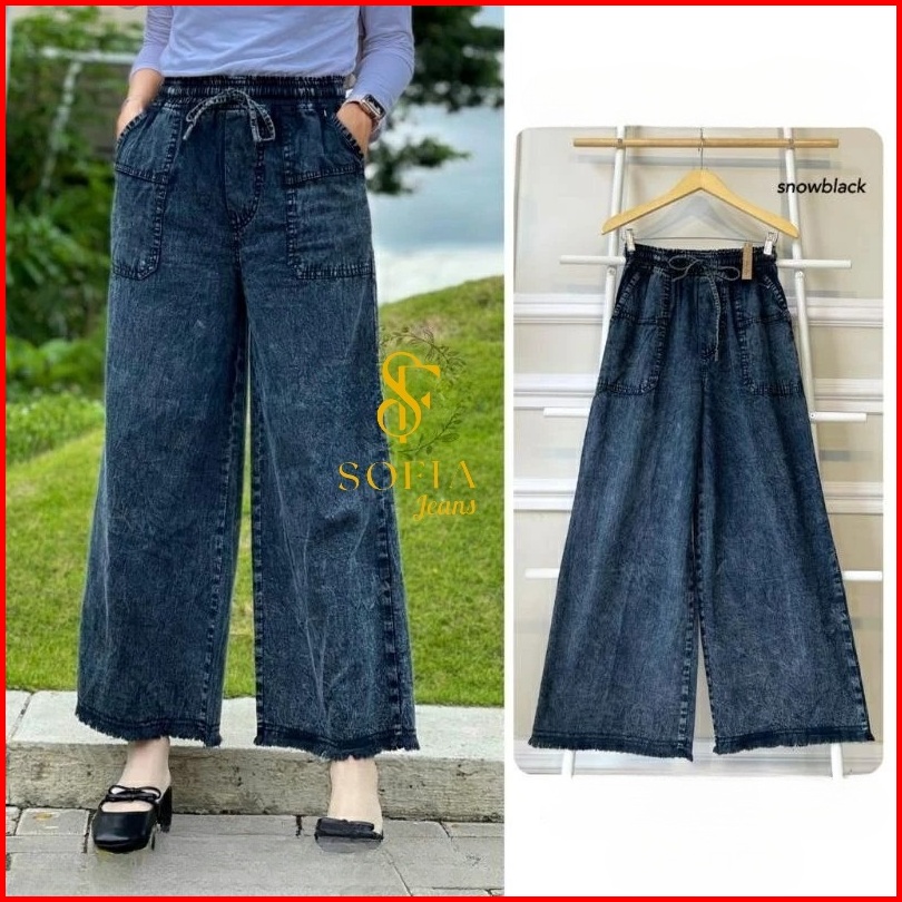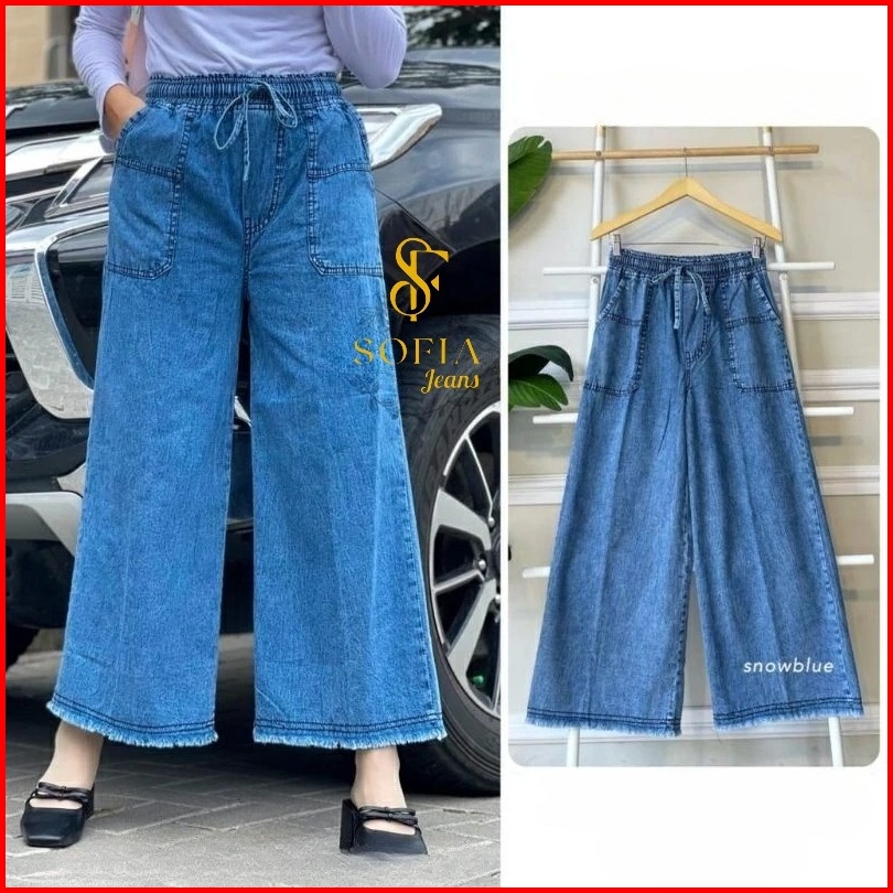 Sofia - Kulot Pocky Rawis Celana Jeans Wanita Allsize Standar Dan Jumbo Kekinian Terbaru