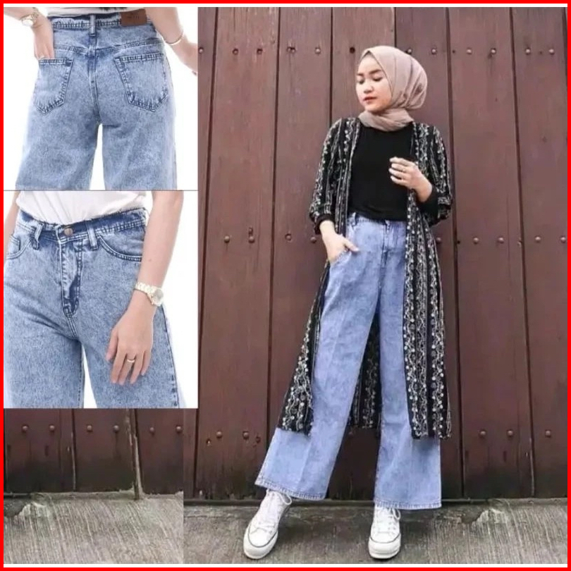 Allena Pants Celanan Kulot Highwaist Jean Wanita Lose Korean Style