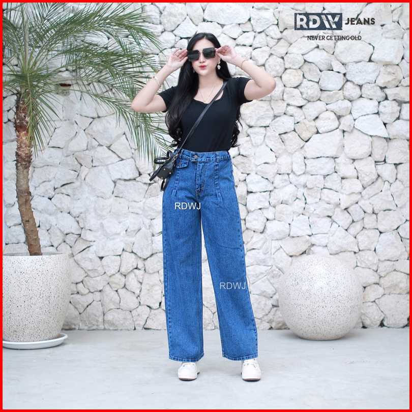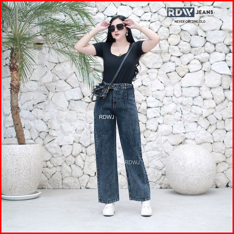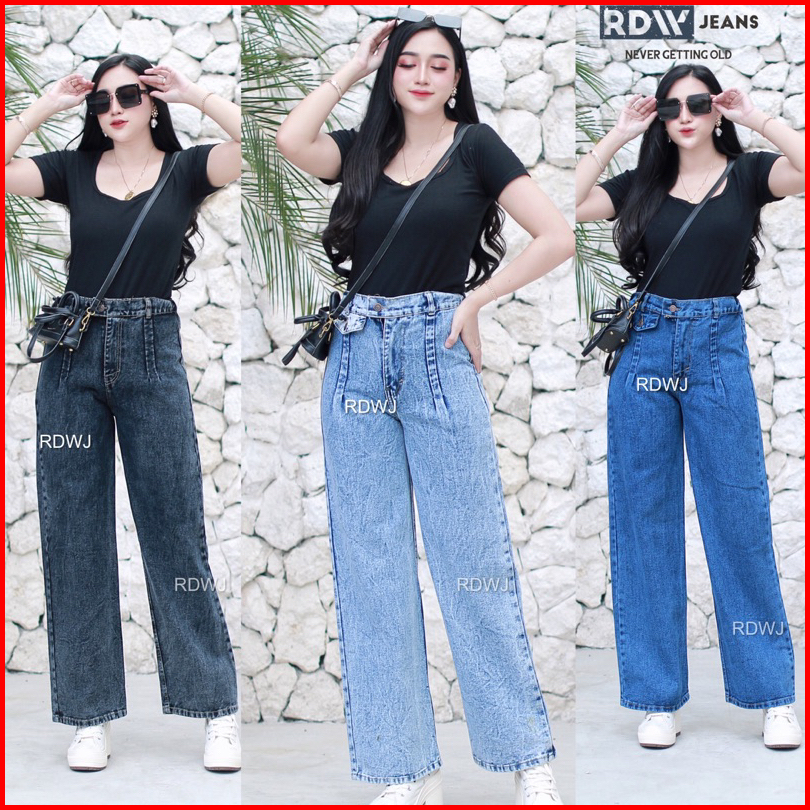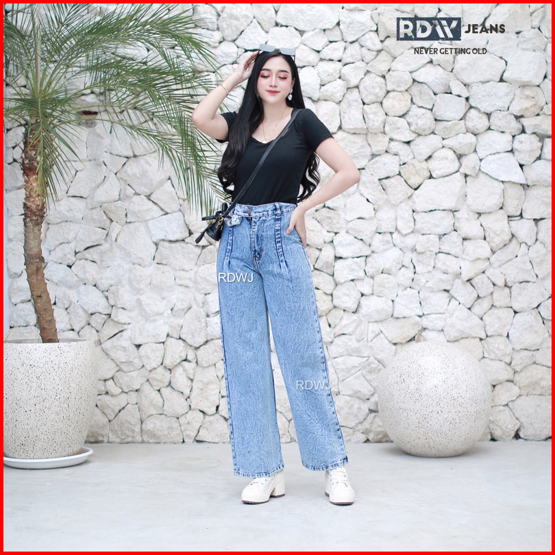 Rdwjeans - Kulot Jeans Annasta Celana Jeans Wanita Premium Varian Kancing Kantong Tutup Warna Snow