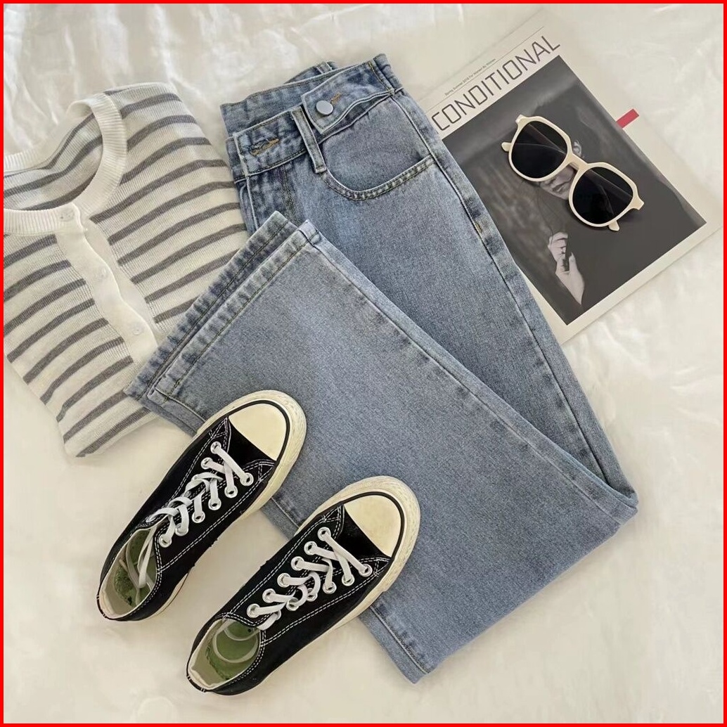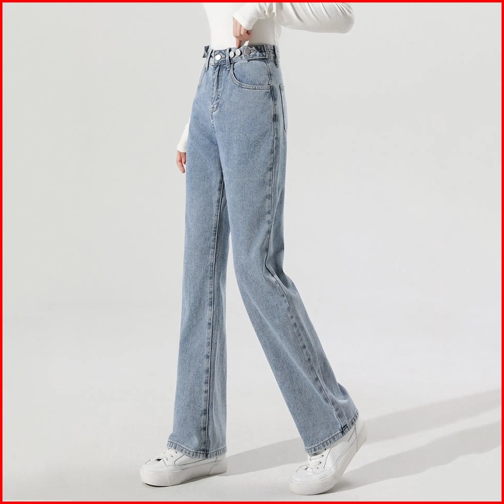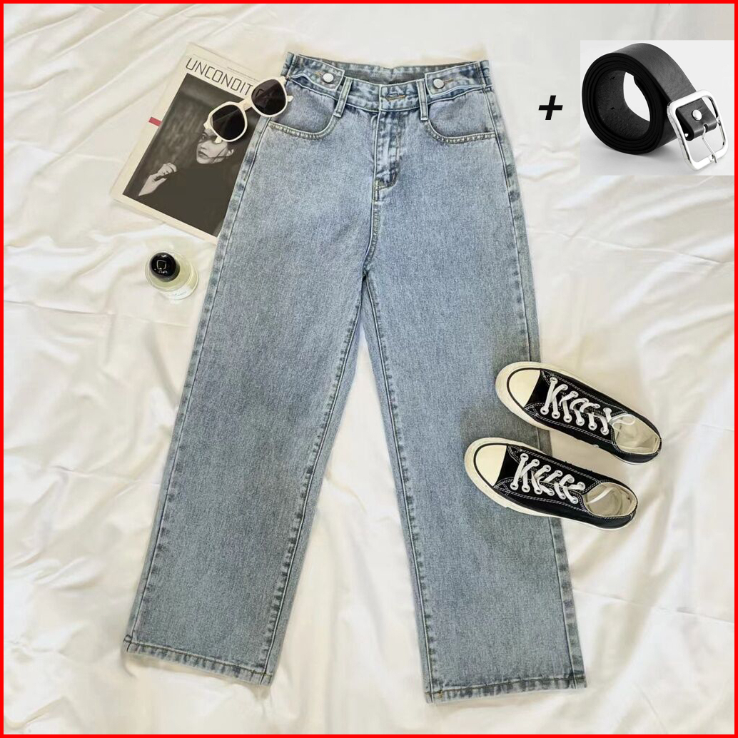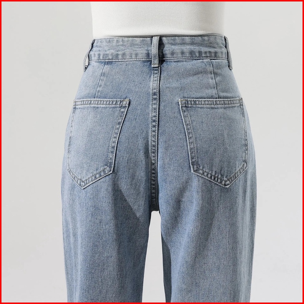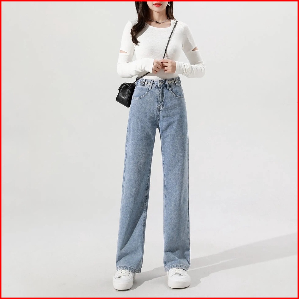 Highwaist Kulot Jeans Wanita Loose Jeans Korean Style Jeans Pinggang Yang Dapat Diisesuaikan