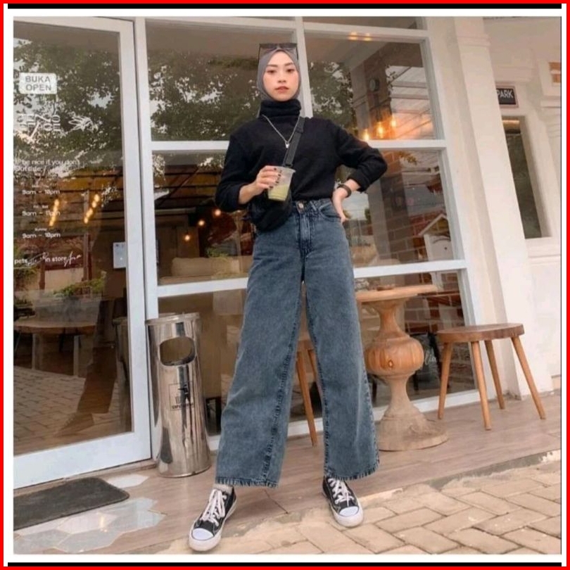 Kulot Jeans Wanita Premium Highwaist Korean Style Bawahan Lipat