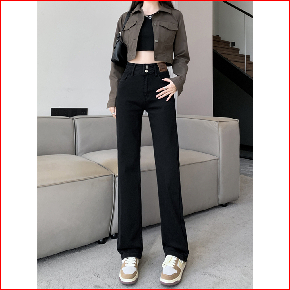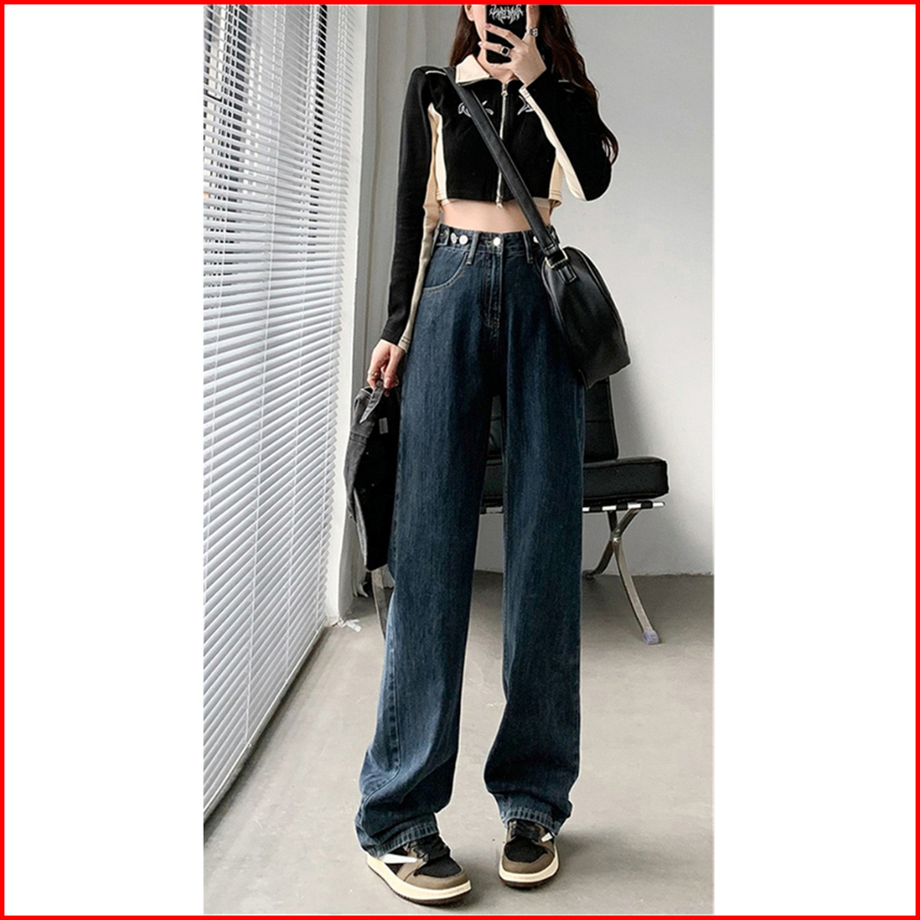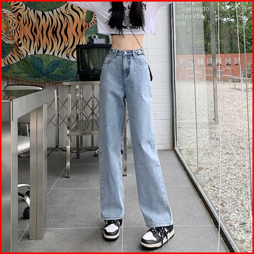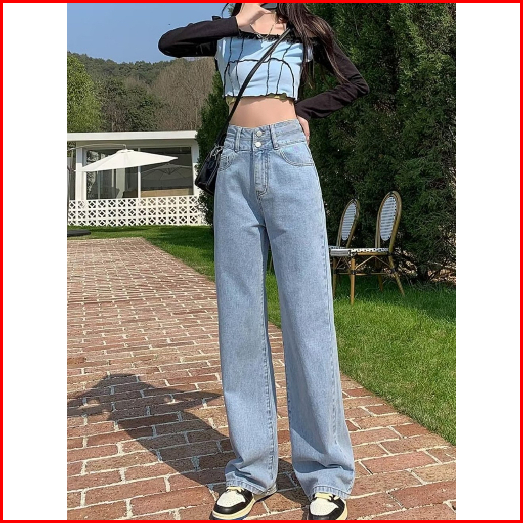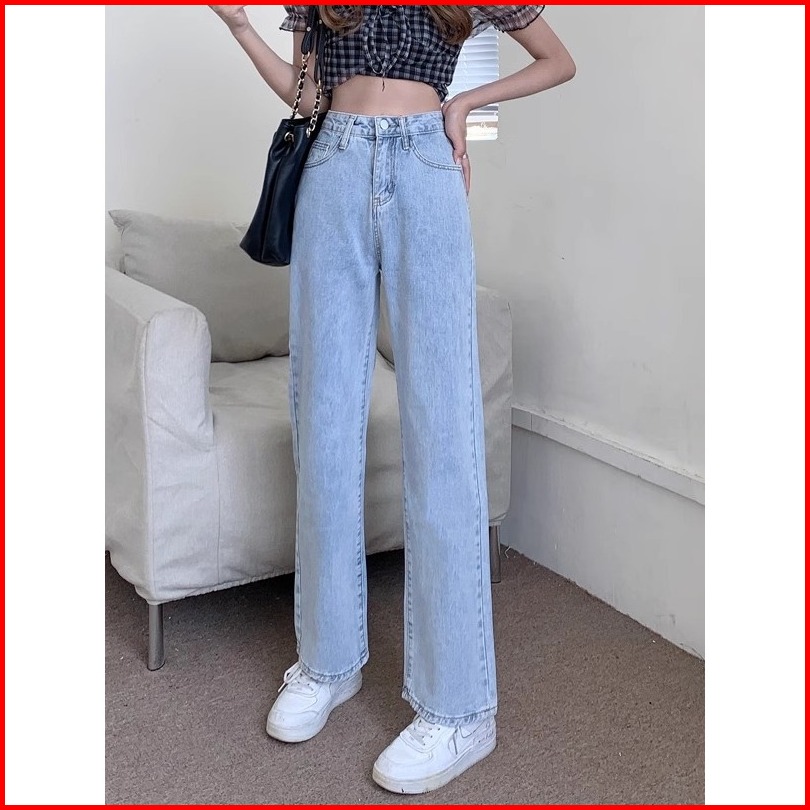 Korean Celana Jeans Haigh Waist Wanita Biru Muda Celana Jeans Baggy