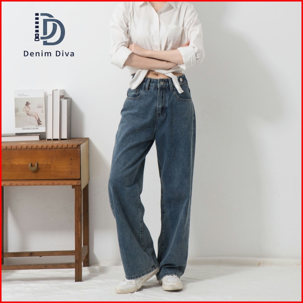 Denim Diva Jeans Highwaist High Loose Wanita Rawis Premium Jeans Cutbray Wanita Celana Pinggang Tinggi Biru Tua 2024 New
