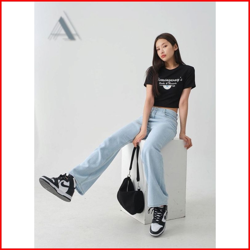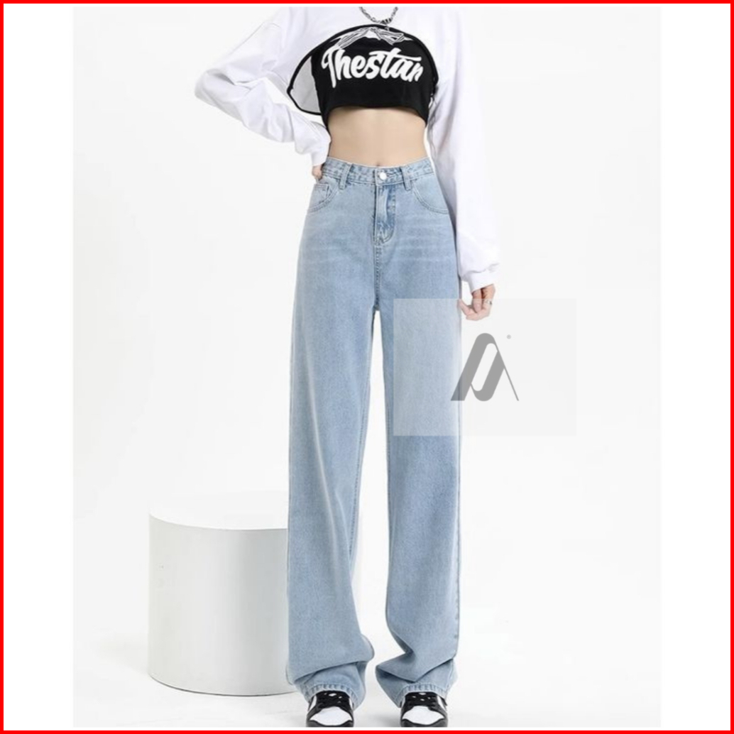 Highwaist Loose Jeans Wanita Premium - Celana Hw Korean Style