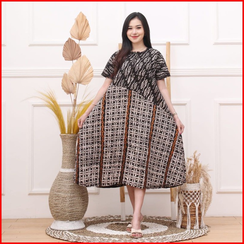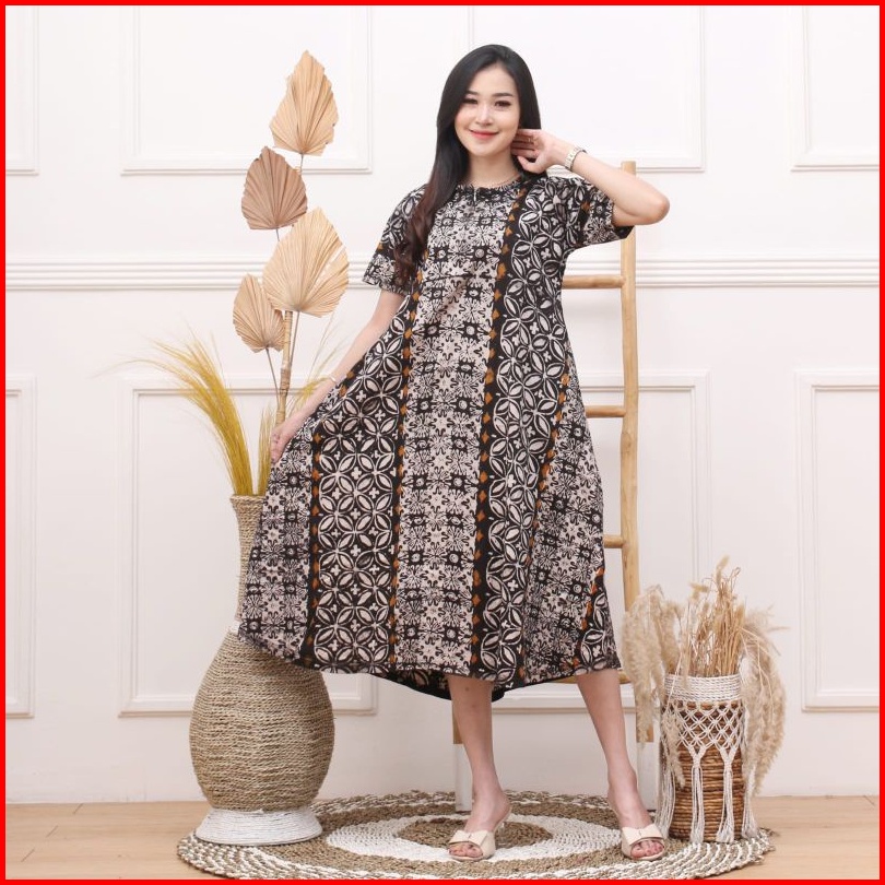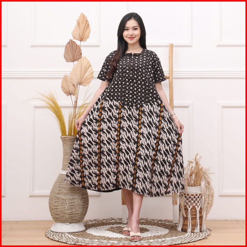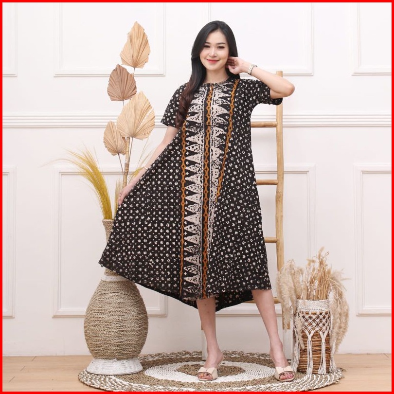 Daster Kaos Payung Busui Batik Cap Resleting Depan Jamin Adem