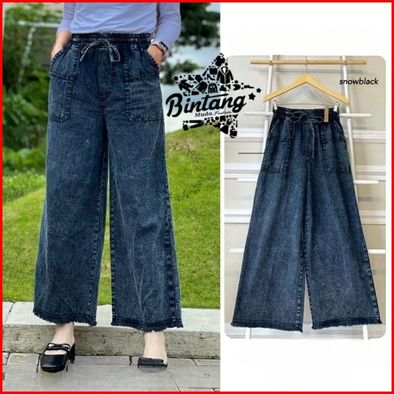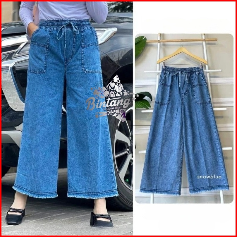 Celana Jeans Kulot Pocky Rawis Panjang Dan Jumbo Terbaru Terlaris Kekinian