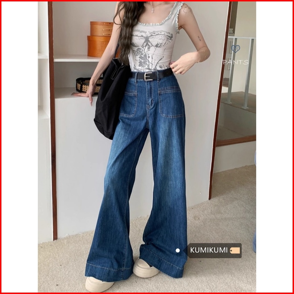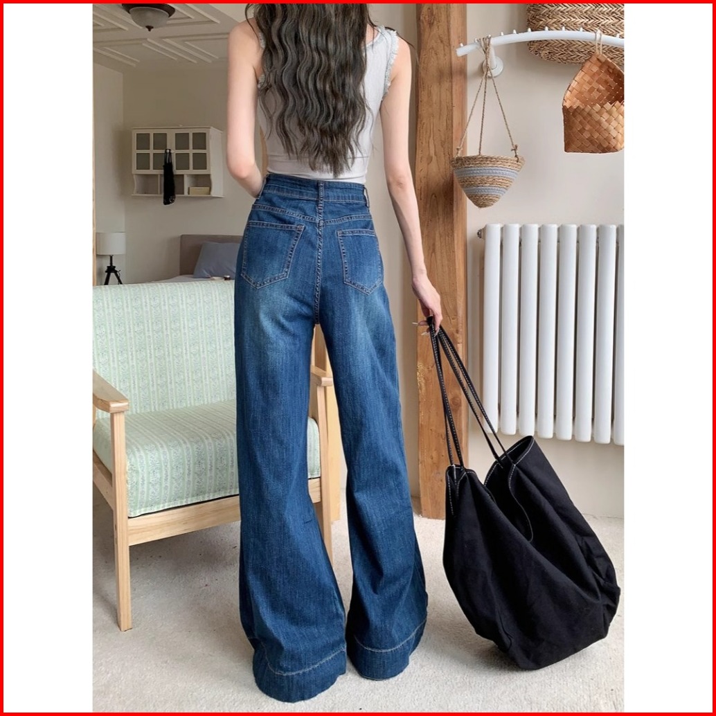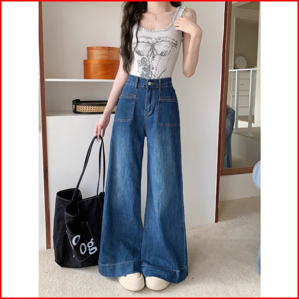 Retro Highwaist Celana Jeans Kaki Lebar Wanita Kekinian Korean Style Cutbray Jeans Ada Melar Kulot Loose Jeans