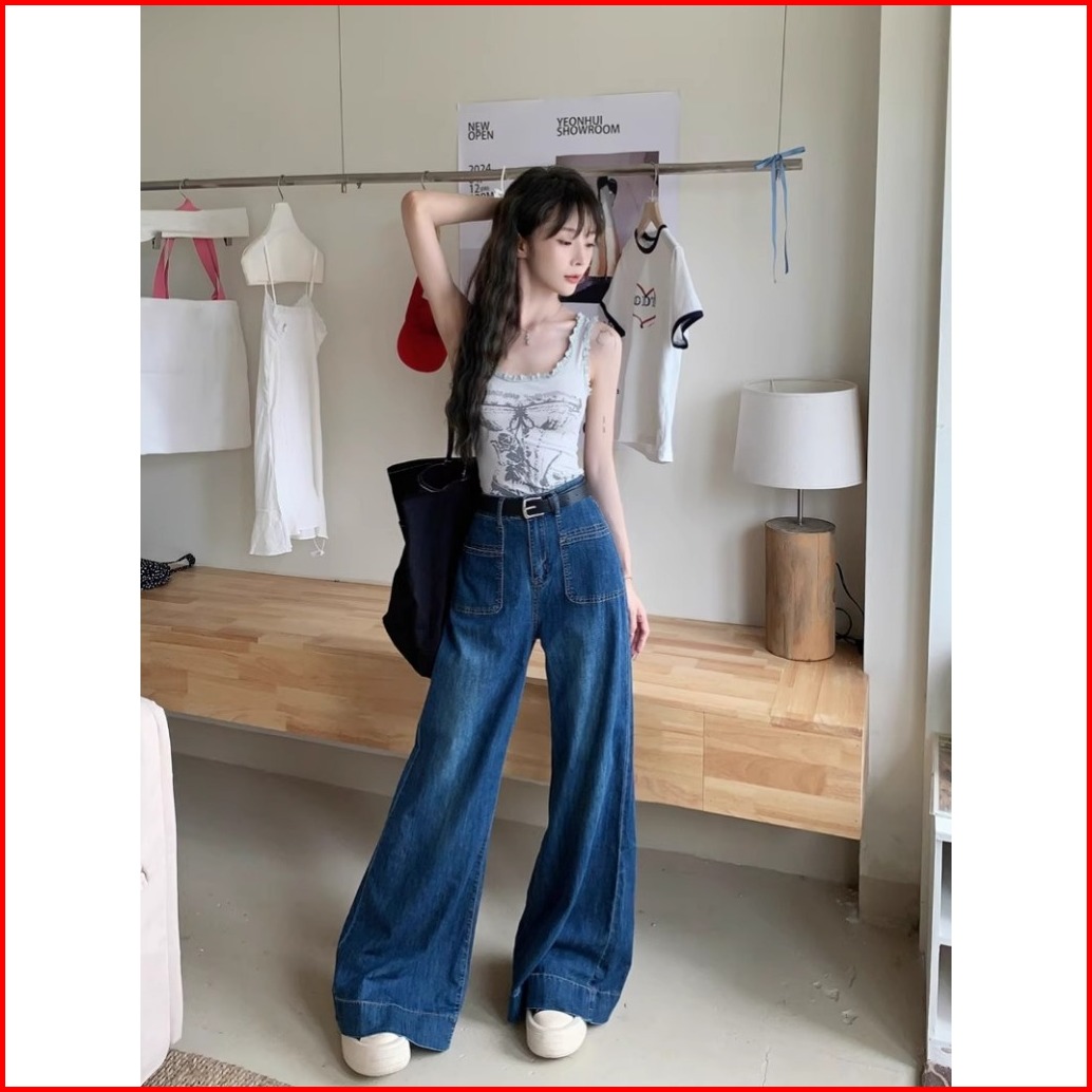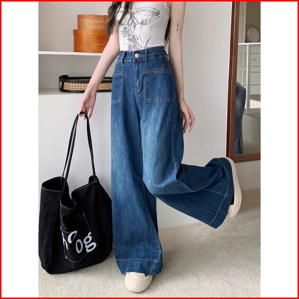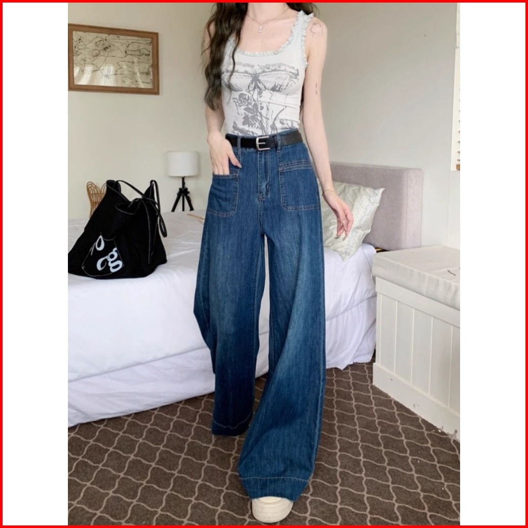 Retro Highwaist Celana Jeans Kaki Lebar Wanita Kekinian Korean Style Cutbray Jeans Ada Melar Kulot Loose Jeans