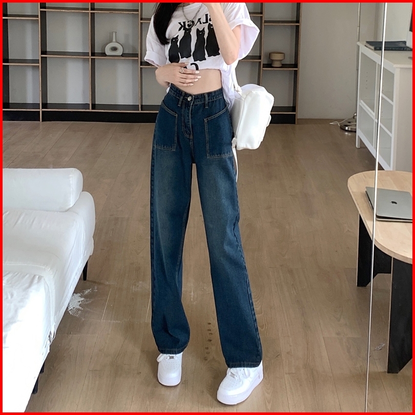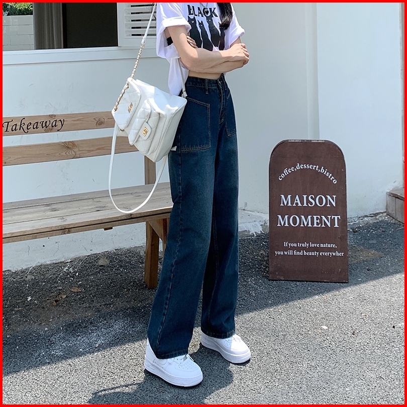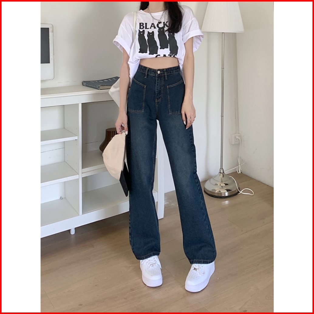 Celana Jeans Terbaru Kulot Korea Celana Biru Retro Loose Pants Highwaist Wanita
