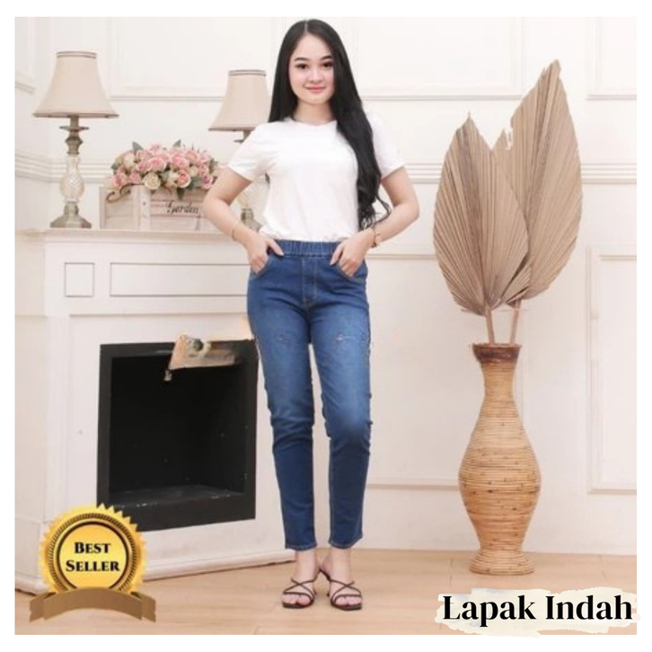 CELANA JEANS WANITA HIGH WAIST JUMBO KEKINIAN TERBARU CELANA LEVIS PINGGANG KARET JEGGING LEGGING JEANS PANJANG ORIGINAL