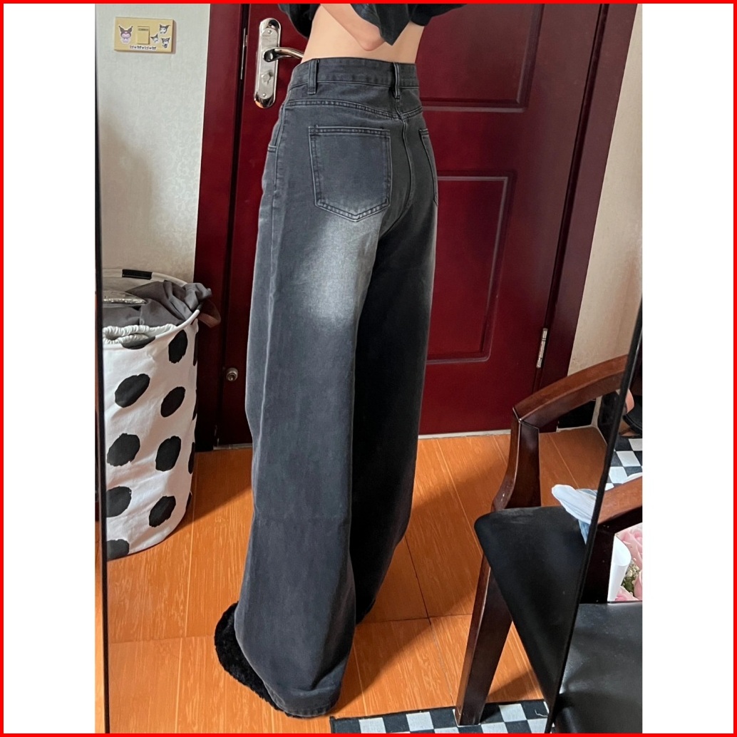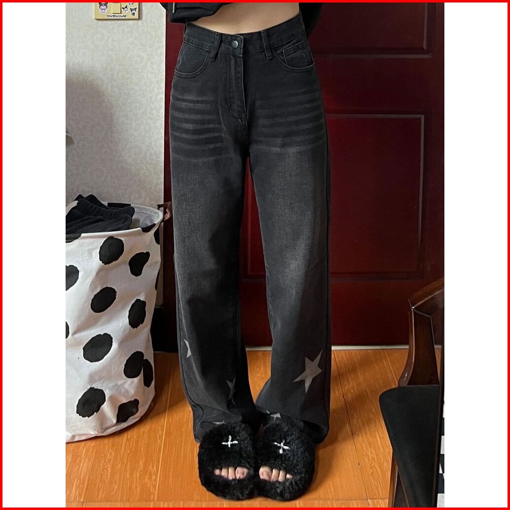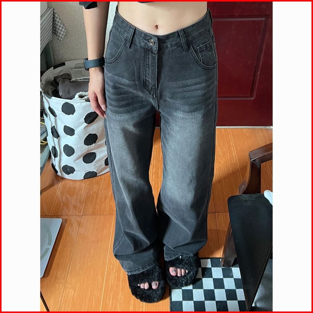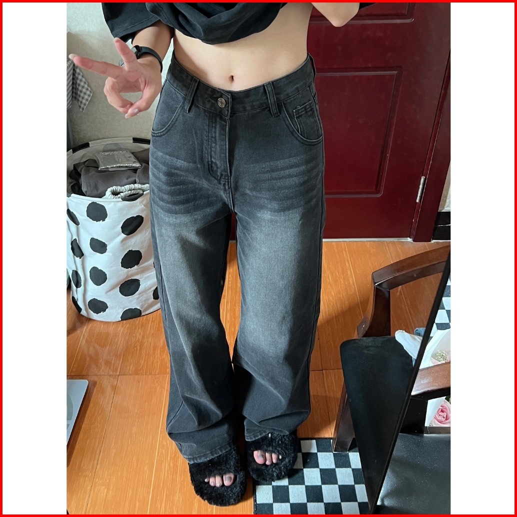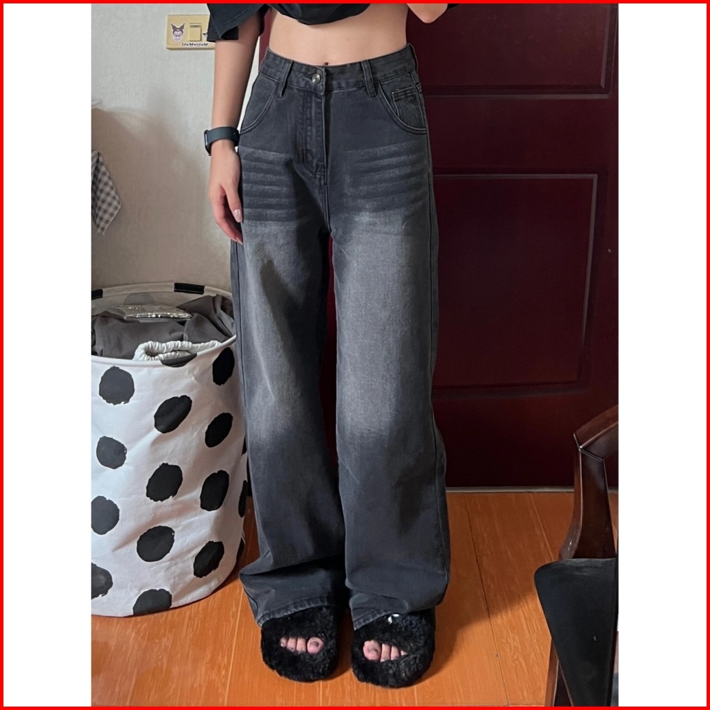 Abu-abu Highwaist Kulot Loose Jeans Celana Baggy Pants Wanita