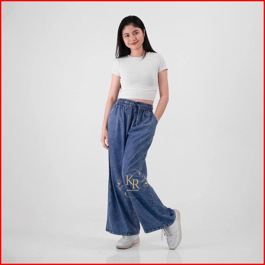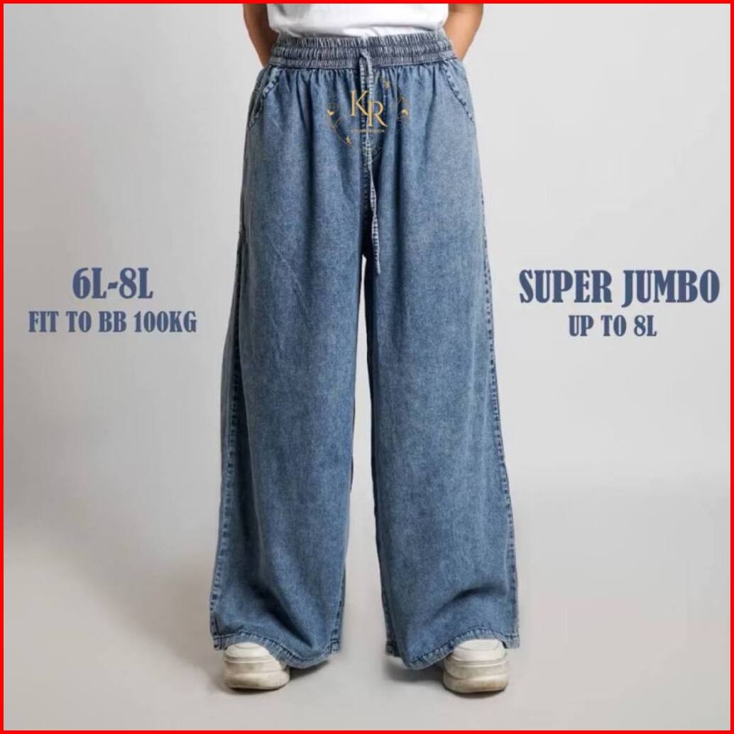 Celana Kulot Panjang Jeans Wanita Fit Super Jumbo 100kg Bigsize Pinggang Karet Coco Karinafahion