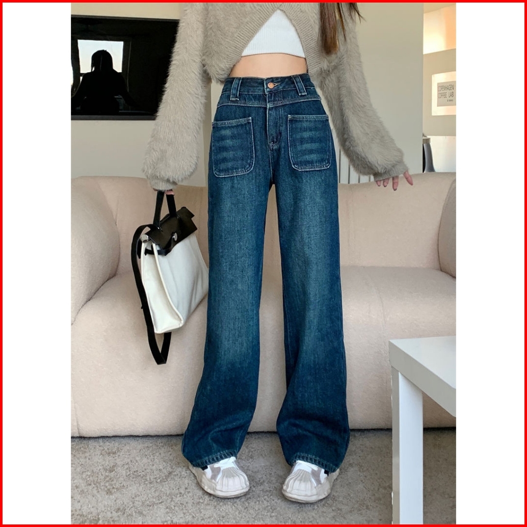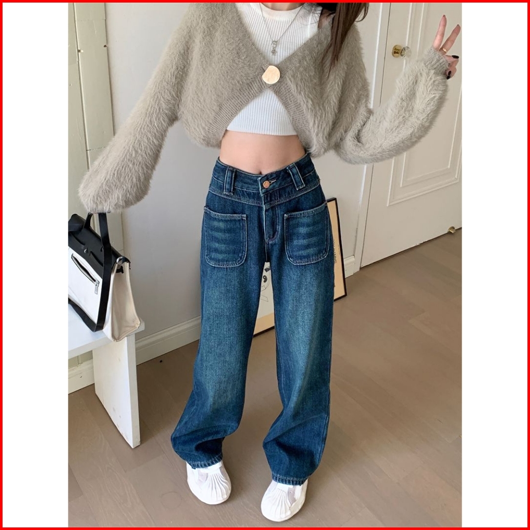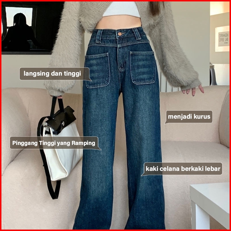 K A S-xl Highwaist Jeans Dark Biru Jeans Celana Kulot Jeans Retro Jeans Retro Blue Jeans Kulot Jeans High Waist Wanita L