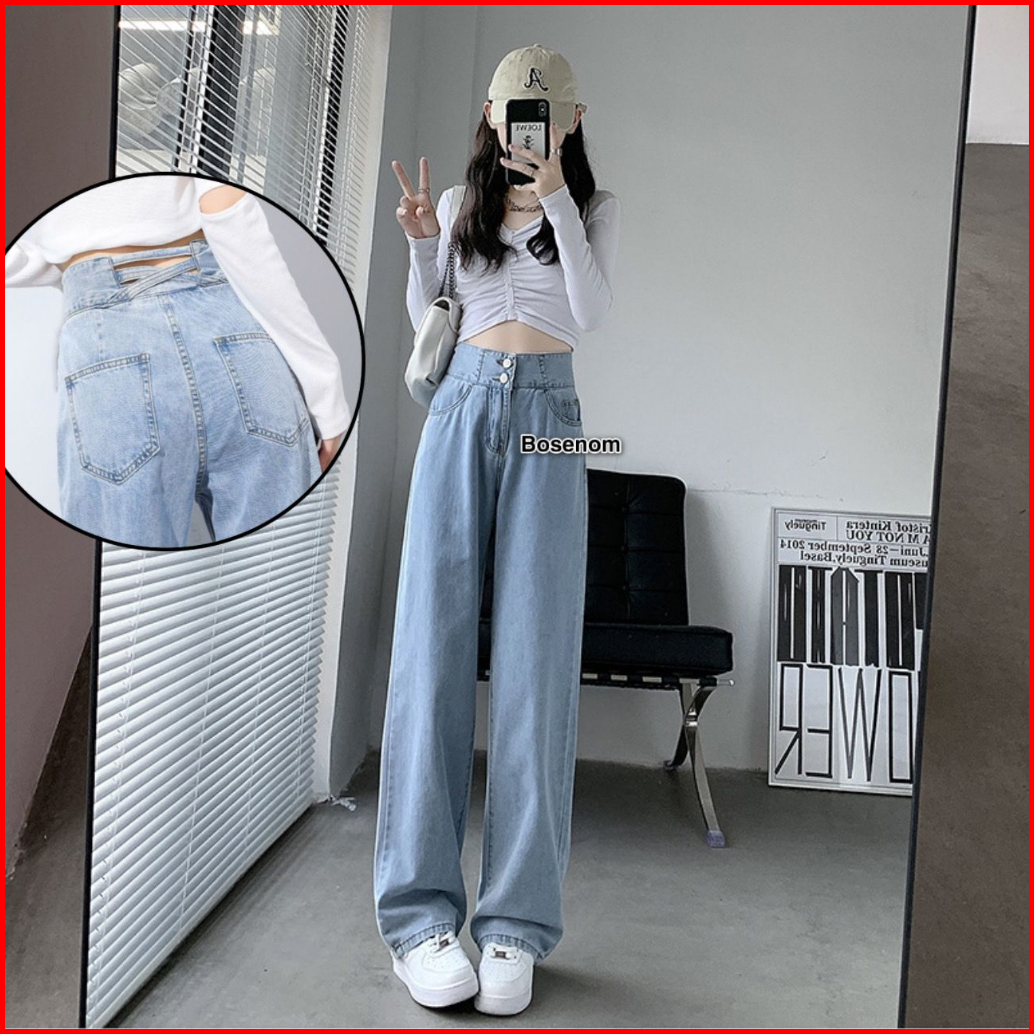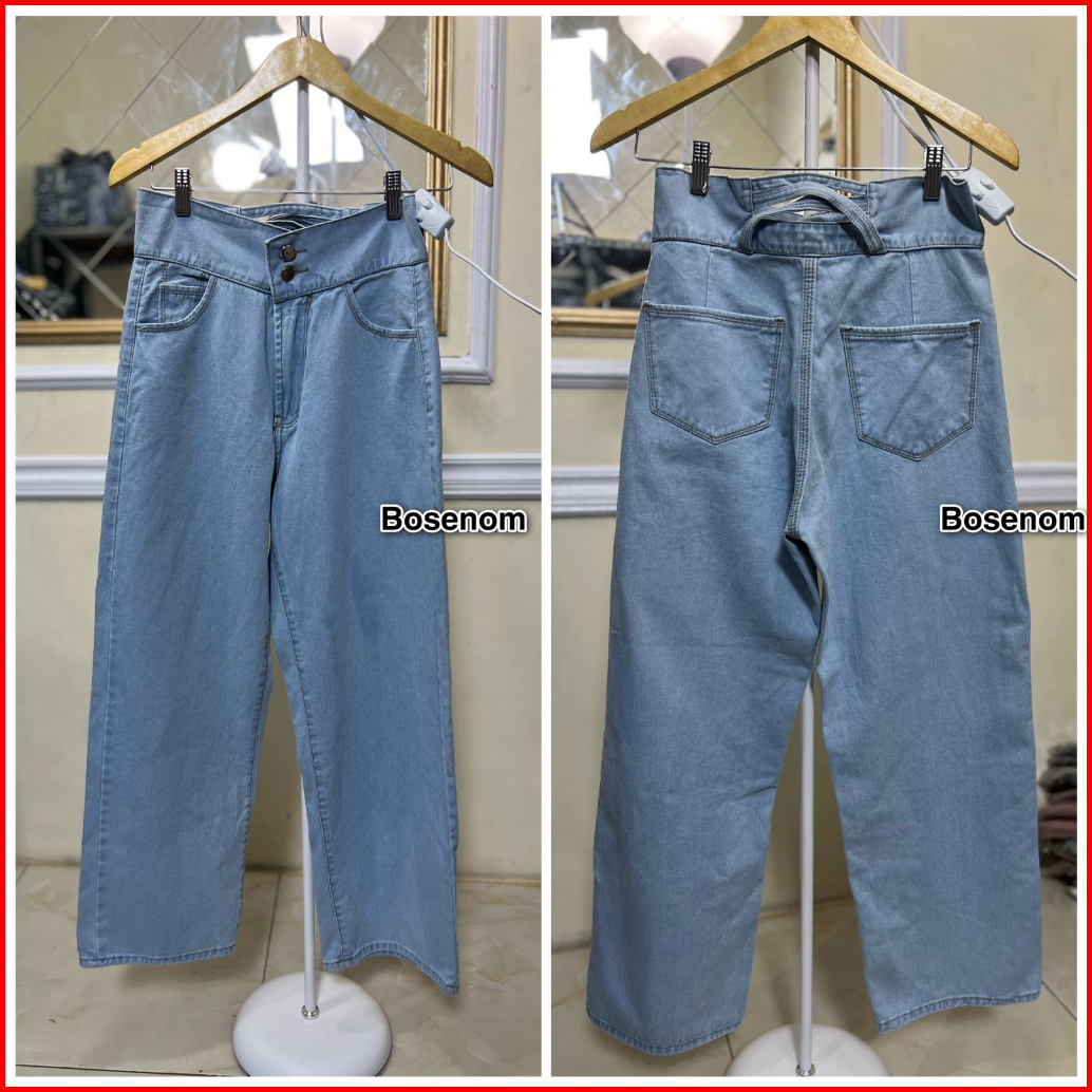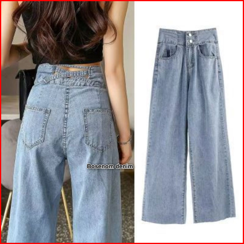 Celana Jeans Wanita Celana Panjang Kulot Jeans Wanita Highwaist Variasi 2 Kancing Premium Loose Celana Jeans Pinggang Cr