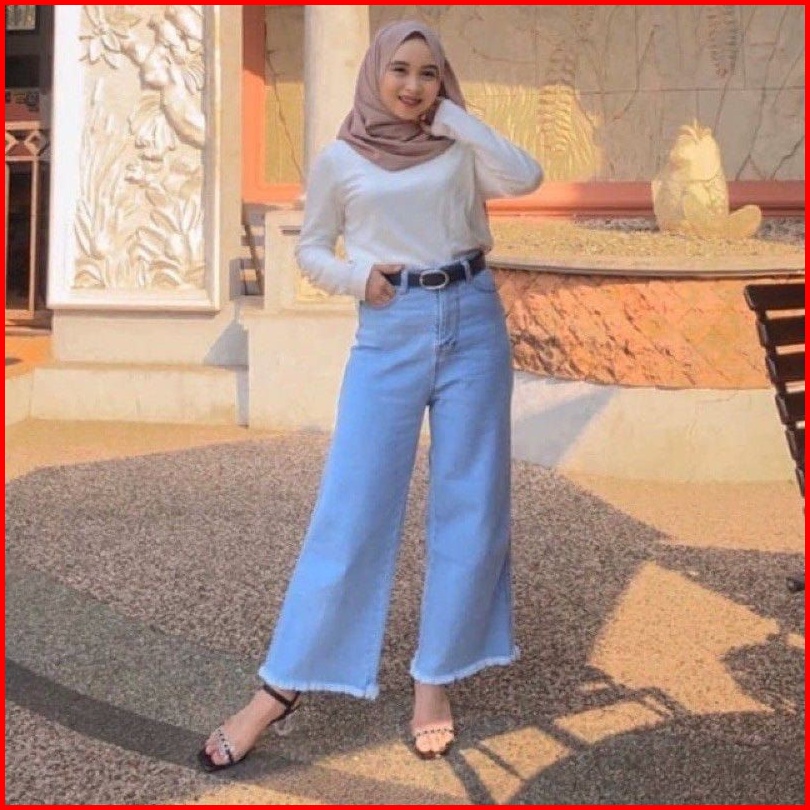 Big Size Celana Boyfriend Kulot Panjang Rawis Jeans Kulot Rawis Wanita Murag Navi Esblu 27-34