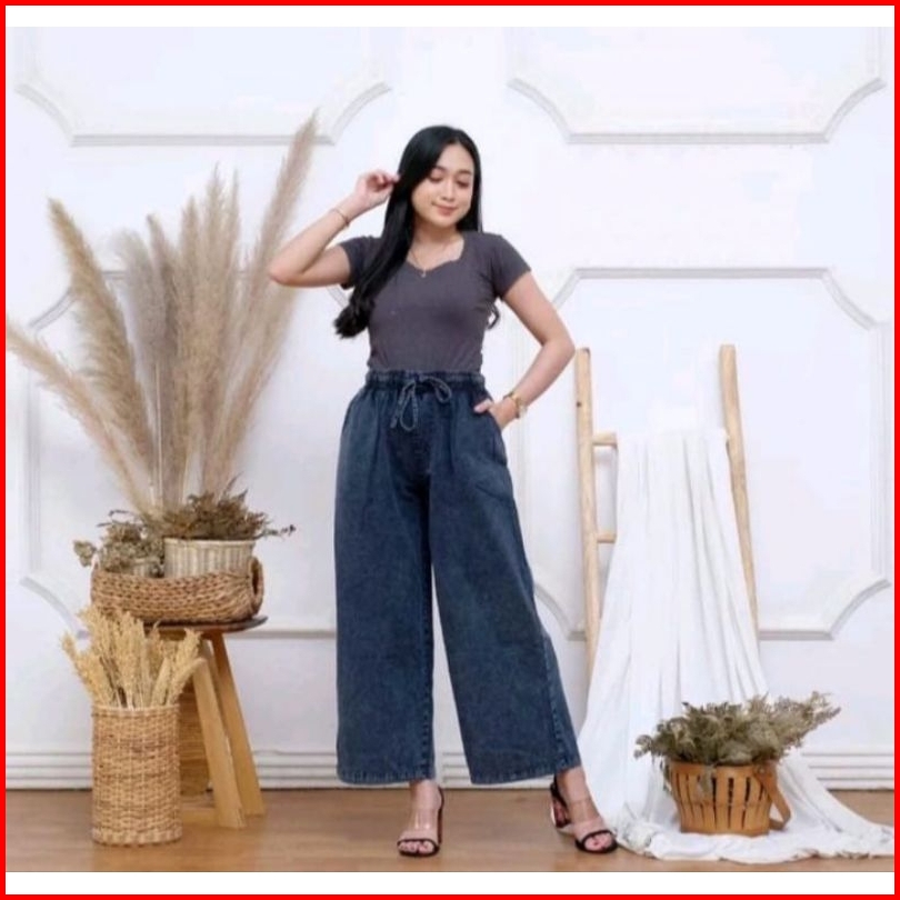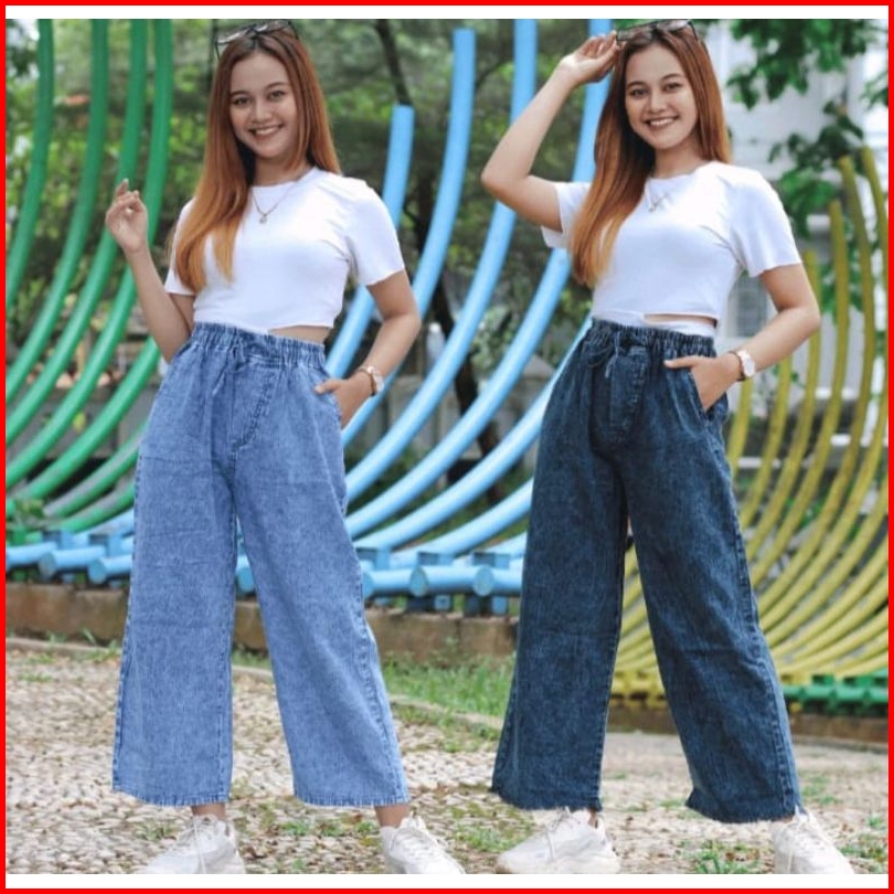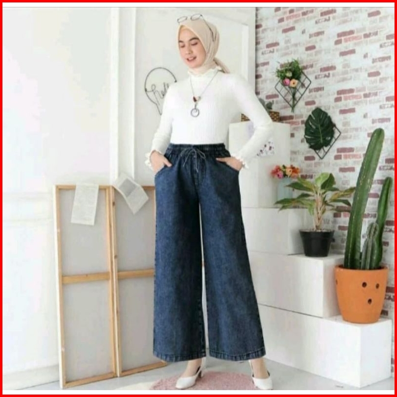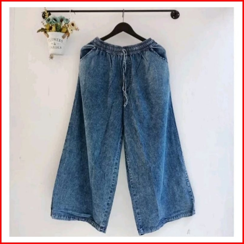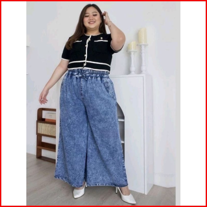 Celana Kulot Jeans Pinggang Karet Celana Wanita Kekinian Size Jumbo Xl Xxl Xxxl