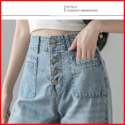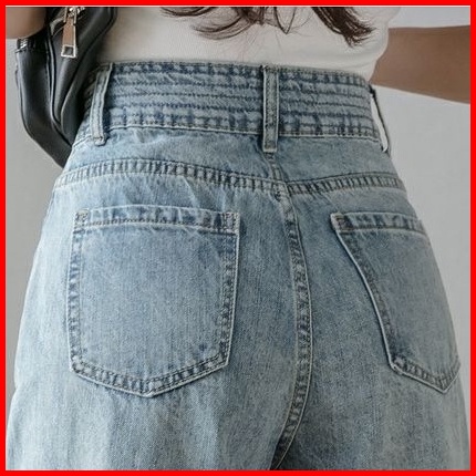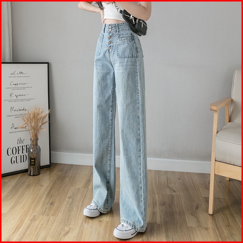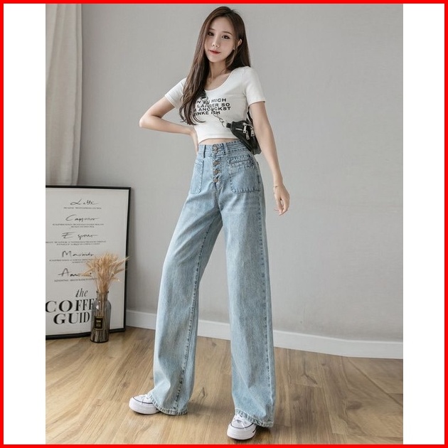 Celana Denim Kaki Lebar Pinggang Tinggi Wanita