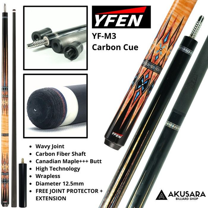 STIK BILLIARD YFEN M SERIES CARBON CUE NEW FREE EXTENSION STIK PLAY BILLIARD GRATIS ONGKIR
