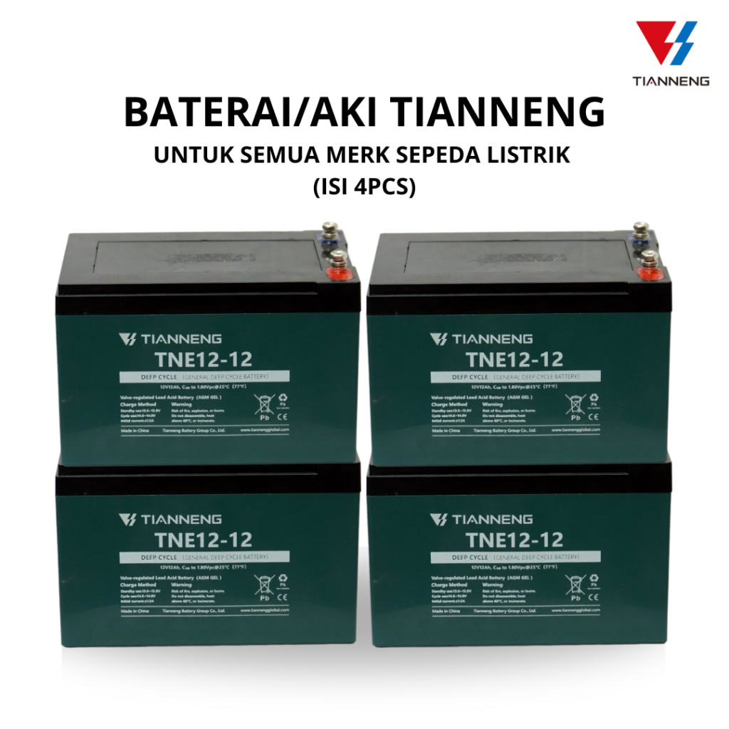 BATERAI / AKI SEPEDA LISTRIK 48V 12AH TIANNENG ORIGINAL NEW (4 PCS)