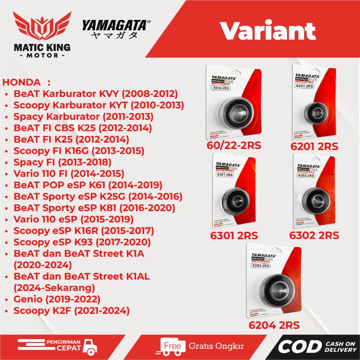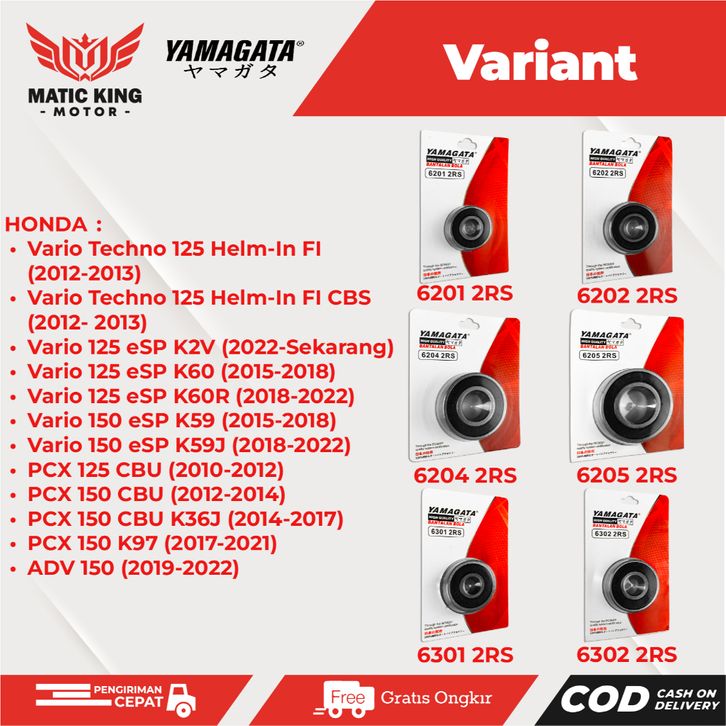 Paket Bearing Laher Lahar Gigi Rasio Gardan Vario Beat Genio Scoopy Spacy 110 125 150 Fi eSP Techno POP Street Yamagata