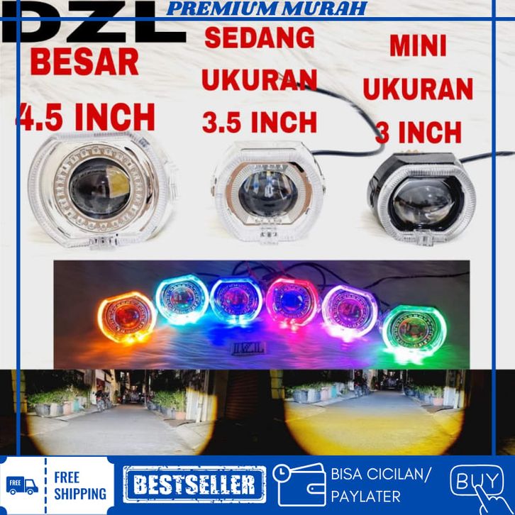 lampu utama shroud projie mt x1 4.5 inch 3 inch 3.5 inch lengkap mini sedang laser cut off jauh dekat 2 warna putih