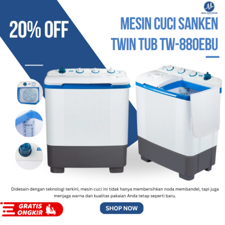 Mesin Cuci Sanken Twin Tub TW-880EBU 8kg Mesin Cuci 2 Tabung