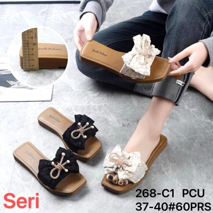 (TERMURAH)Sandal Selop Jelly Wanita Pita Kain Ikat Mutiara Lucu Terbaru 268