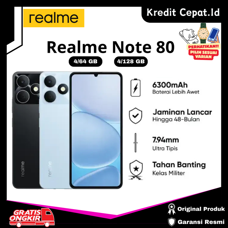 NEW LAUNCH Realme Note 80 4/128GB | 4/64GB Baterai 6300mAh, Proteksi ArmorShell Garansi Resmi - Kredit Cepat.Id