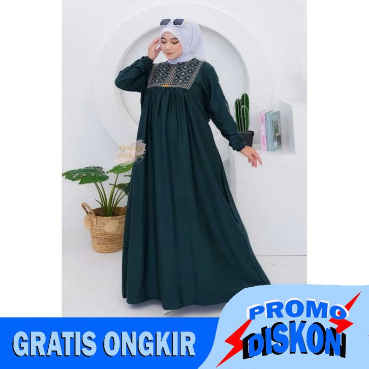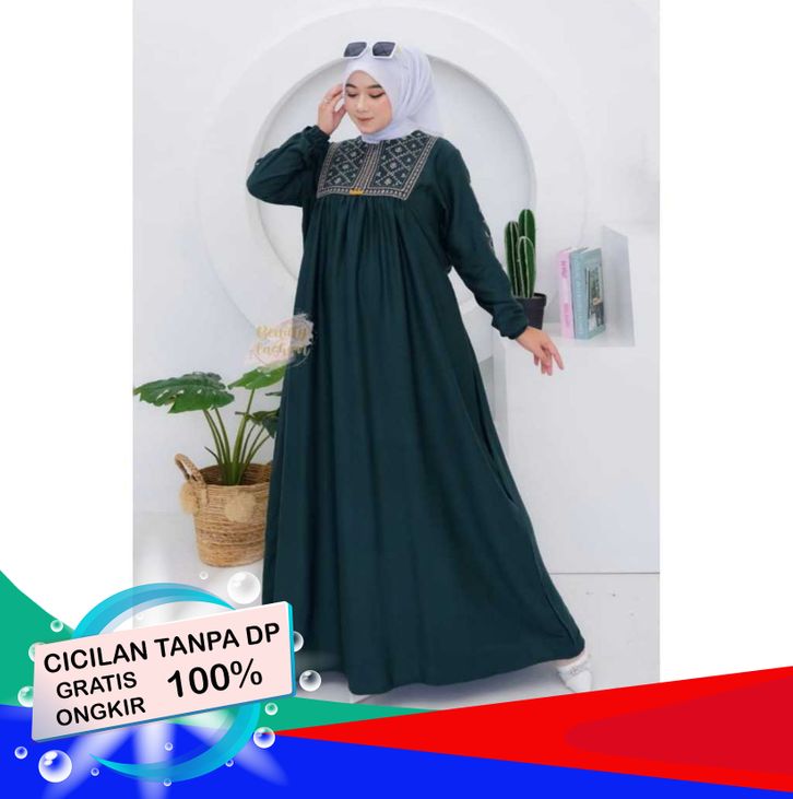 Gamis Rayon Twill Bordir Wanita KAYLA Premium Terbaru Busui Friendly Dress Motif Model Kekinian