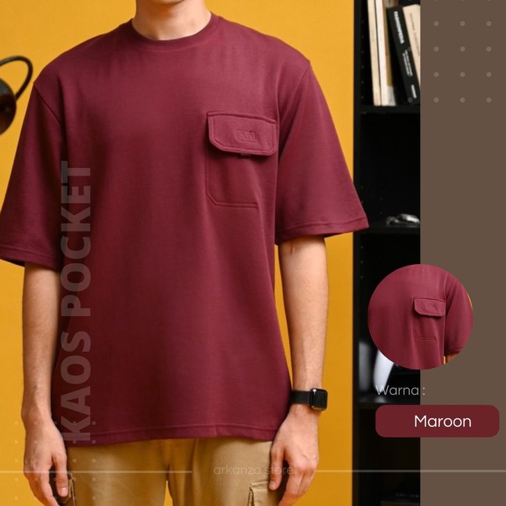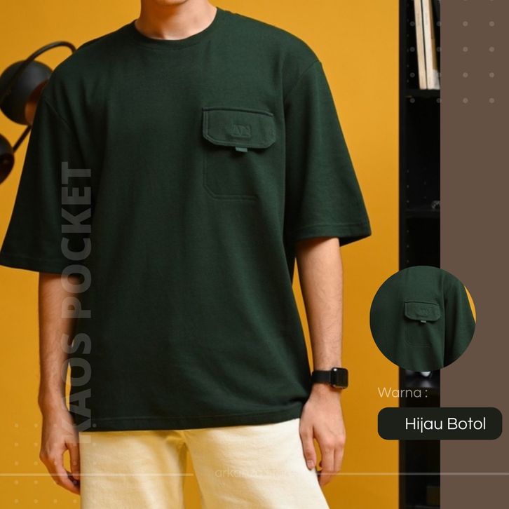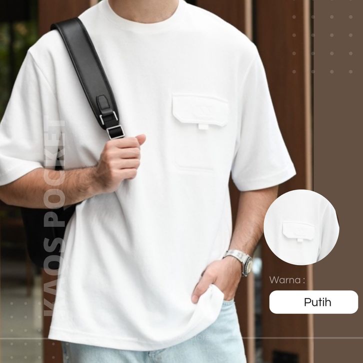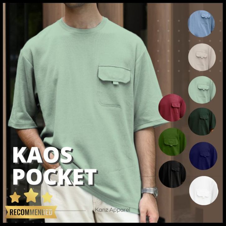 Kaos Polos Pria/Kaos Pria Distro Bandung/Cotton Combed 24s Salur Pocket Oversize Original Murah Jumbo Premium Baju Keren