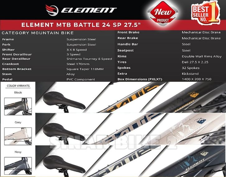 BEST SELLER Sepeda Gunung MTB ELEMENT BATTLE Ukuran 27.5 Inch Full Suspensi Remaja Dewasa