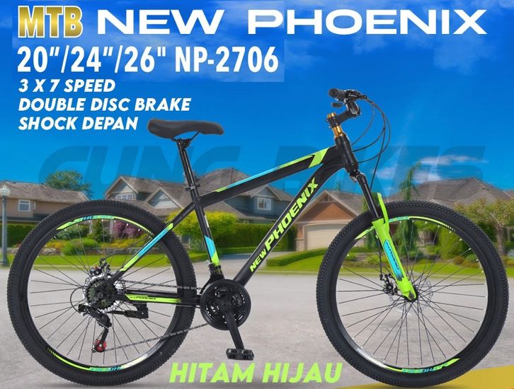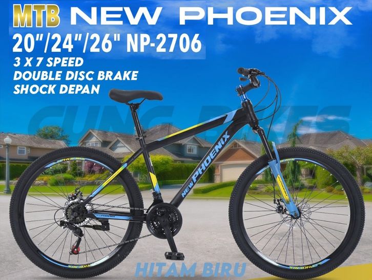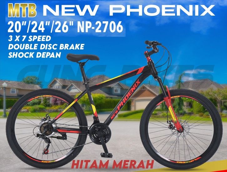 BEST SELLER Sepeda Gunung MTB Phoenix 2706 Ukuran 20 24 26 Inch Disc Brake depan Belakang