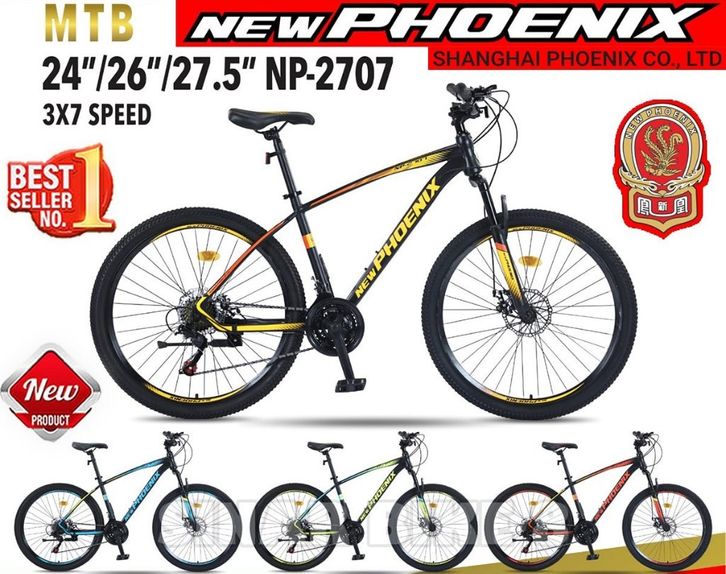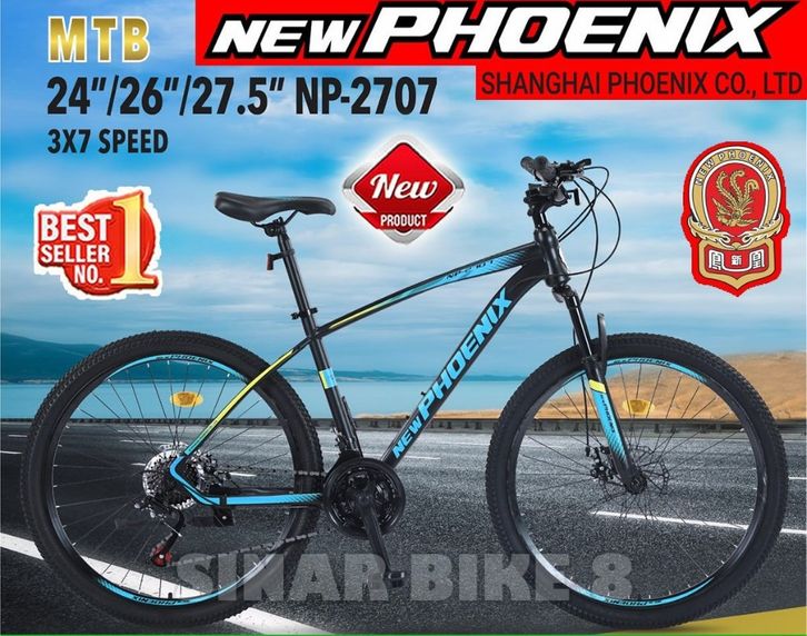 BEST SELLER Sepeda Gunung MTB PHOENIX NP-2707 Ukuran 24, 26, dan 27,5 inch 3x7 speed