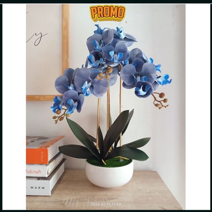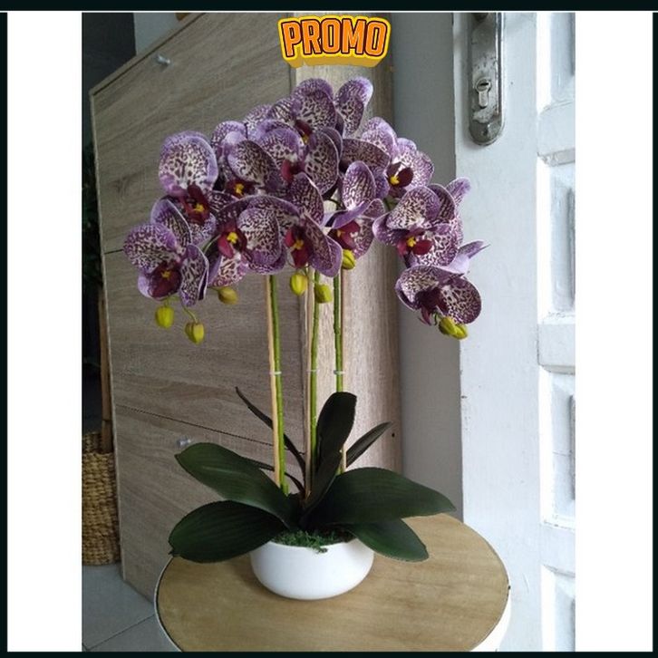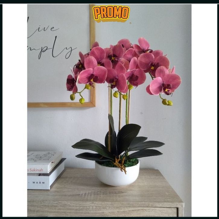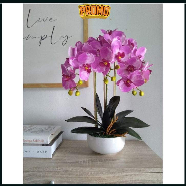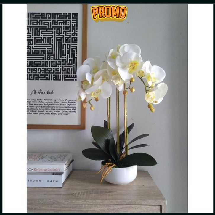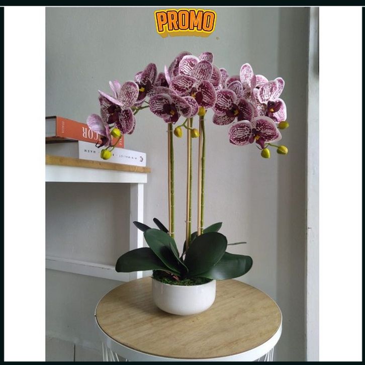 [Star] Rangkaian Bunga Anggrek lateks dengan pot keramik