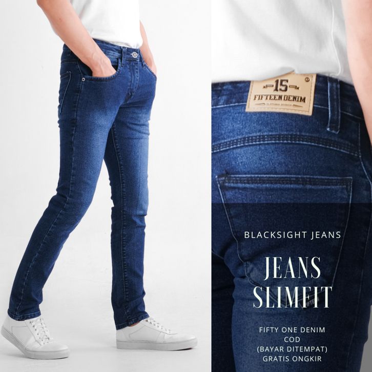 Celana Jeans Pria Wanita Slim fit Streetch Original New Fifteen Denim