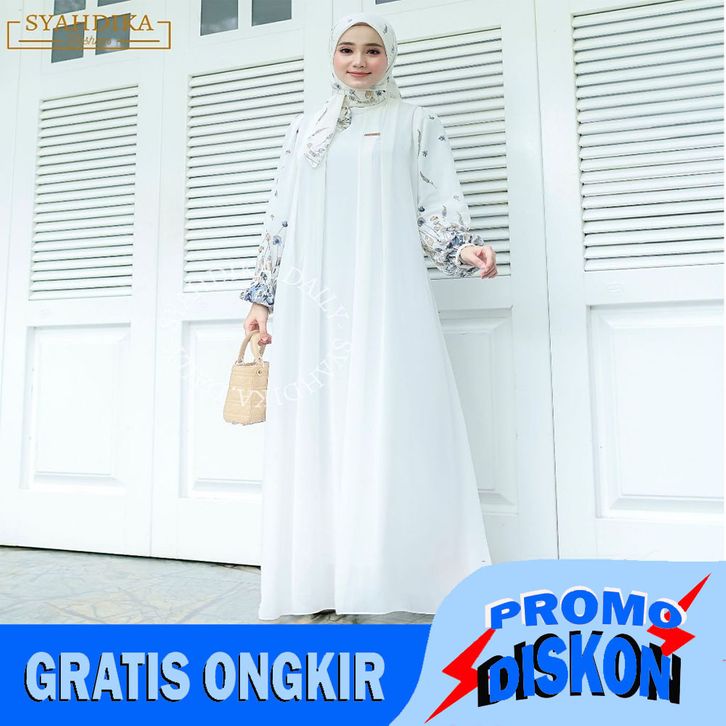 (FREE HIJAB) ZASKIA PUTIH DRESS GAMIS SET JILBAB WANITA KEKINIAN CERUTY BABY DOLL PREMIUM