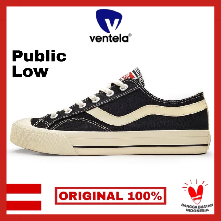 SEPATU VENTELA PUBLIC LOW BLACK NATURAL ORIGINAL OFFICIAL STORE ID